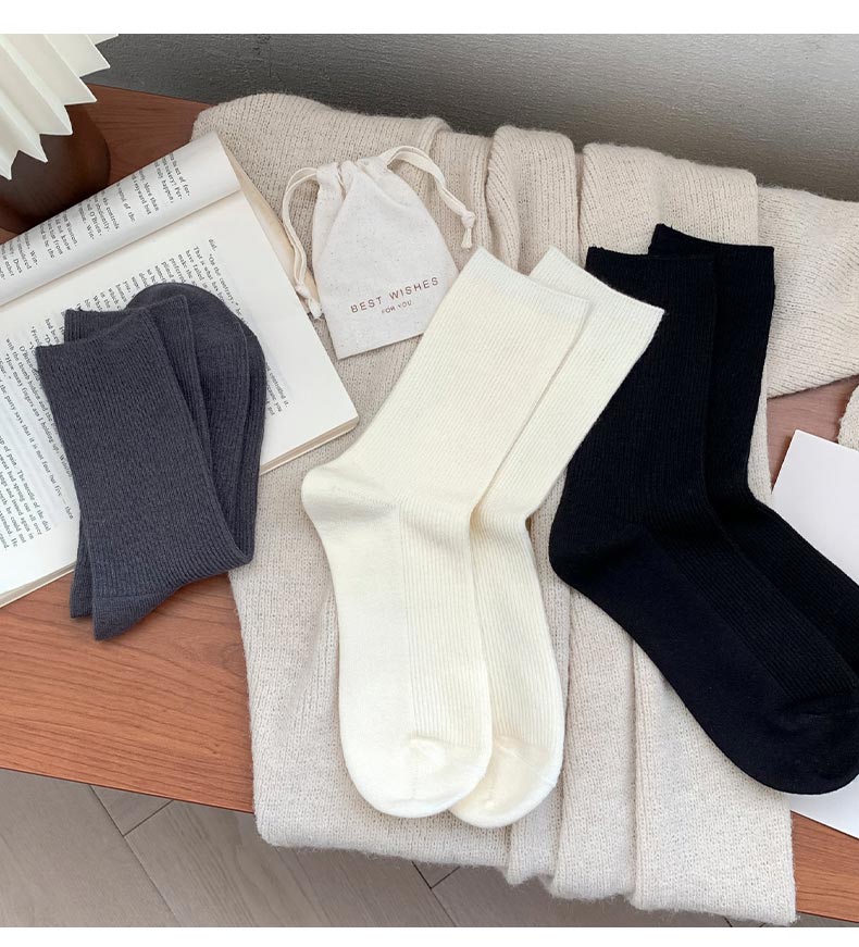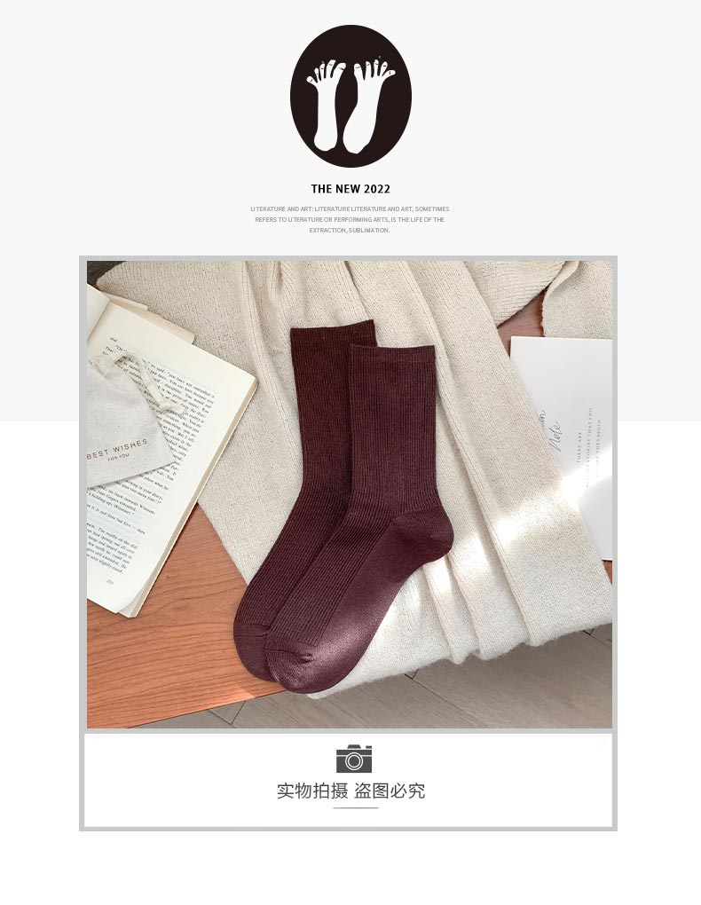 美拉德净版竖条袜简约纯色暖绒袜-纪念日百货门店同款167343486