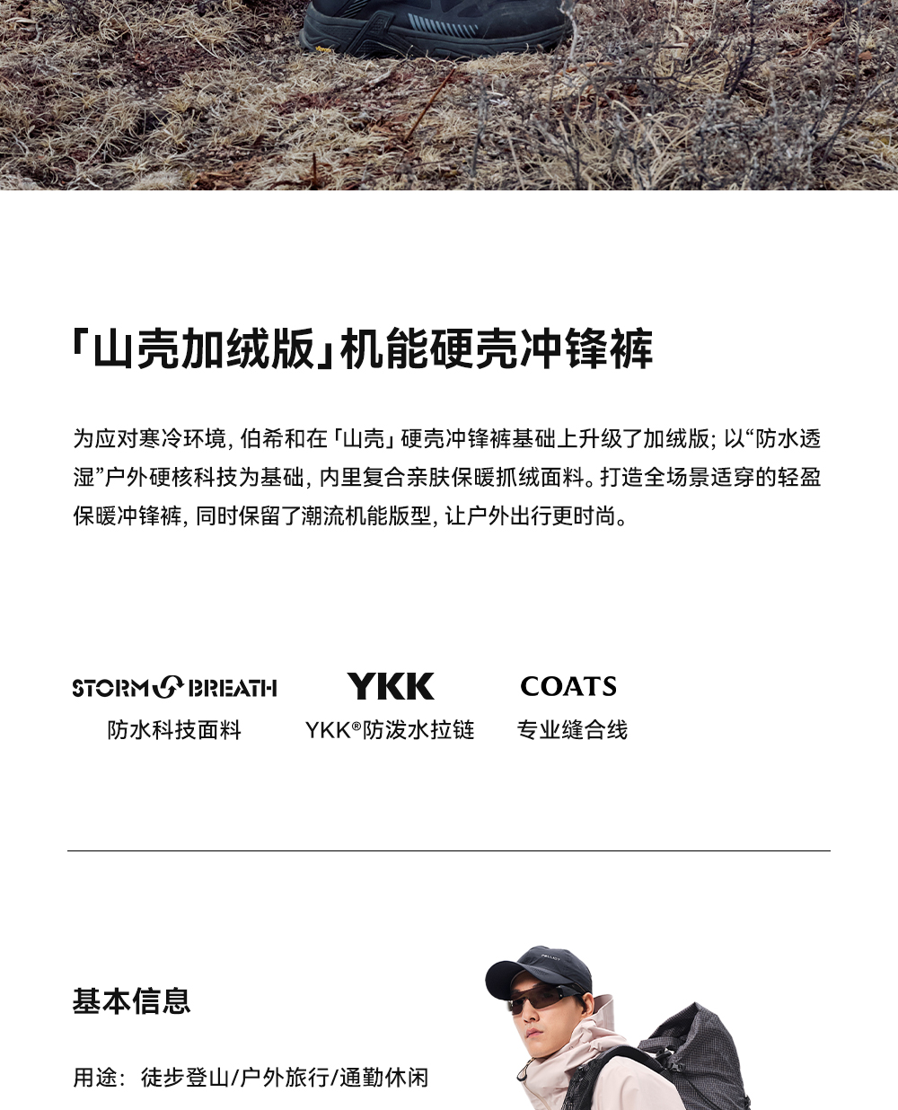 【山壳加绒版】伯希和户外硬壳冲锋裤男2025新款防水登山裤女