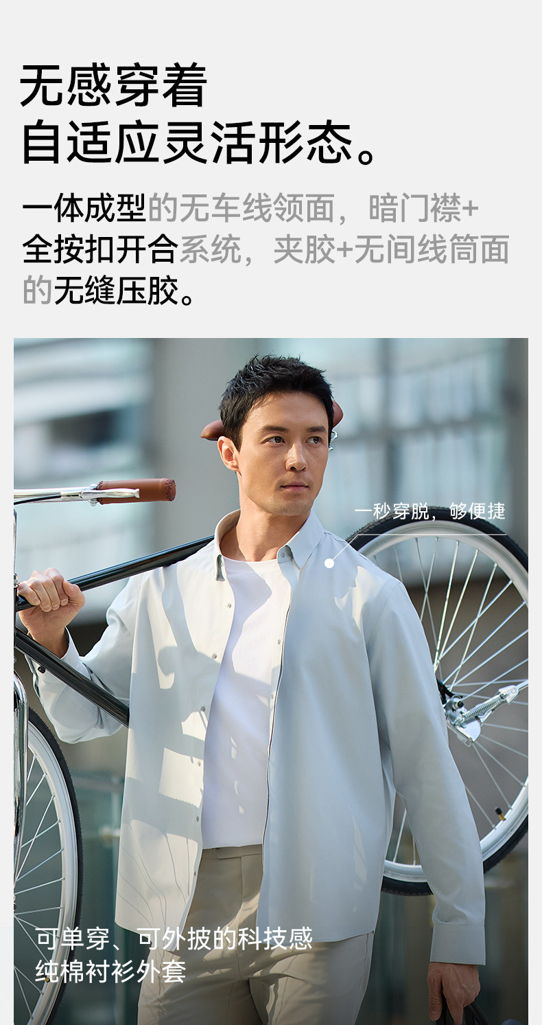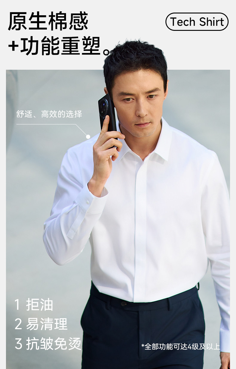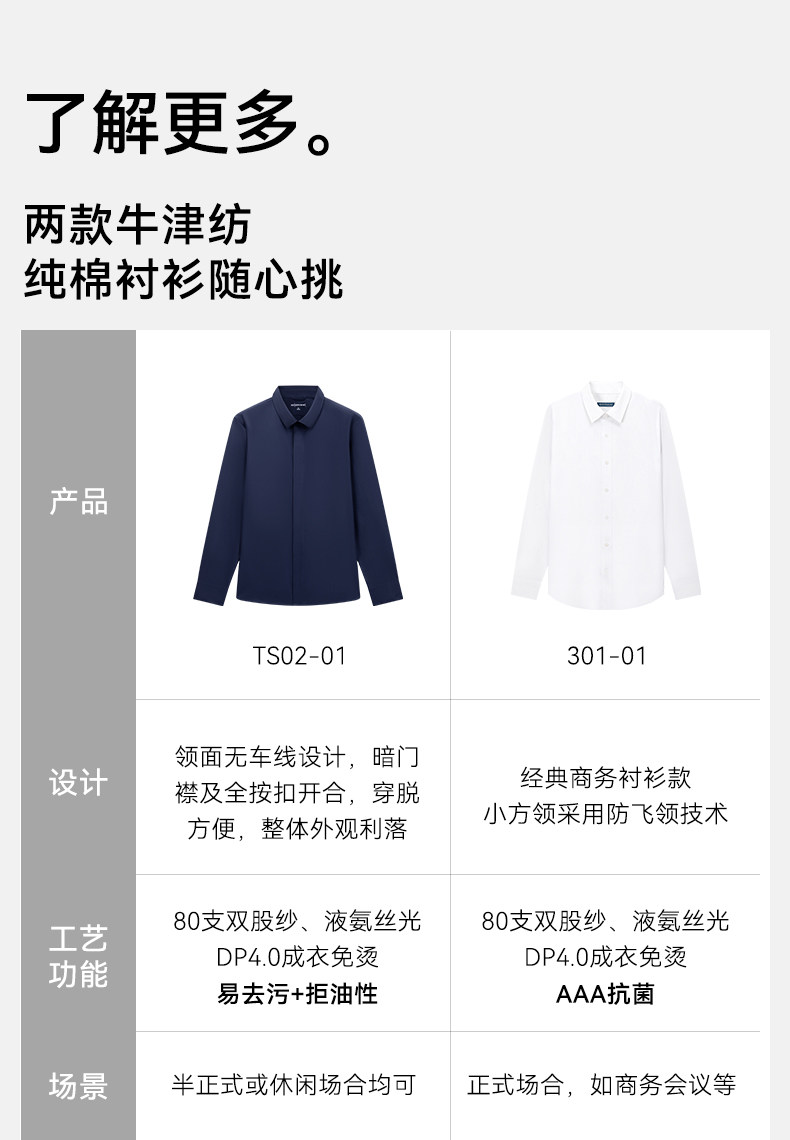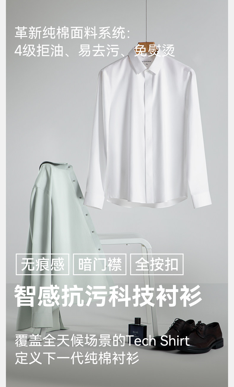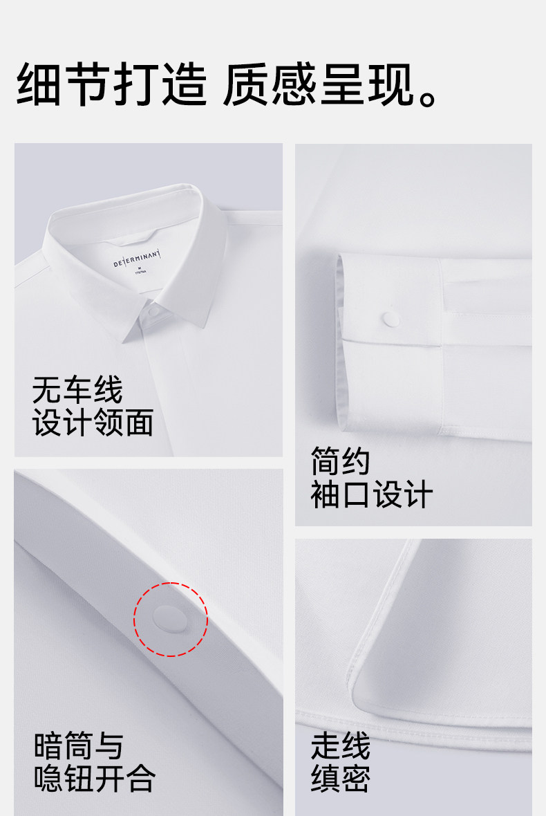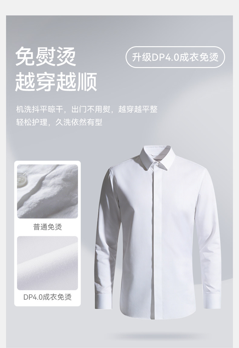 【春夏新品】十如仕男士纯棉质感抗污科技全暗扣长袖免烫衬衫TS02-01