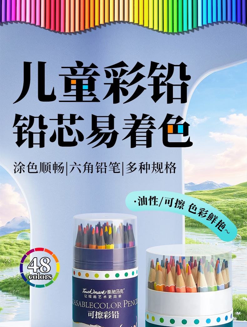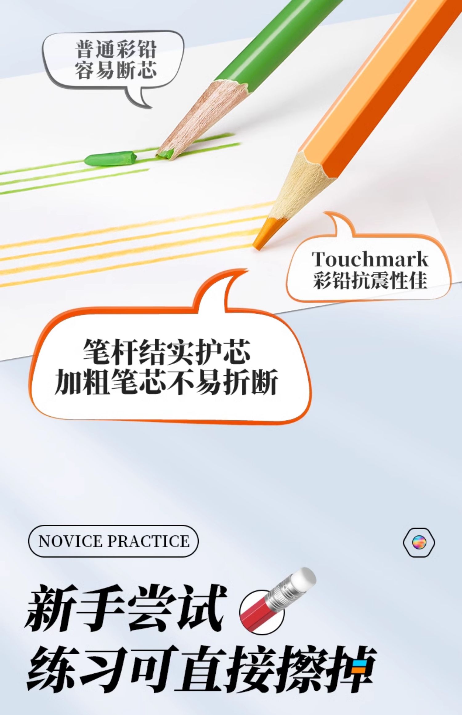 Touchmark泰驰马克儿童彩铅小学生画画手绘铅笔基础版