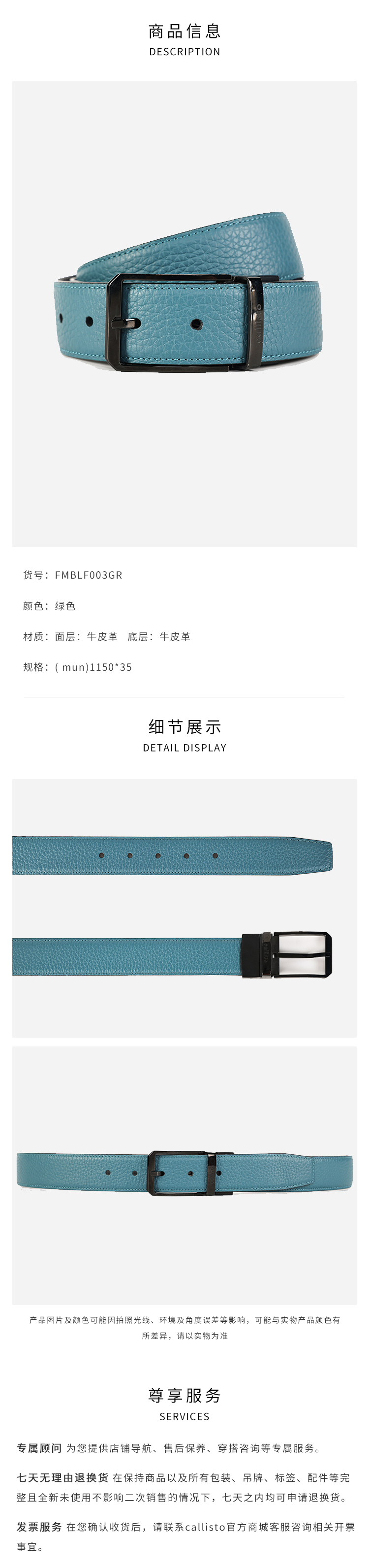 callisto绿色牛皮革皮带 FMBLF003GR