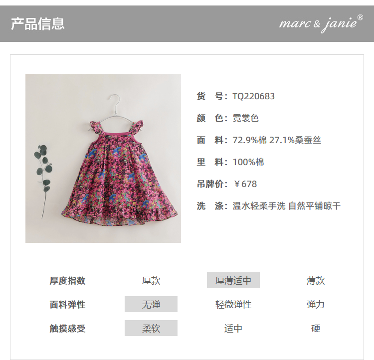 【打折】【中大童】【马克珍妮 芦芙】夏装新 女童棉真丝吊带裙220683