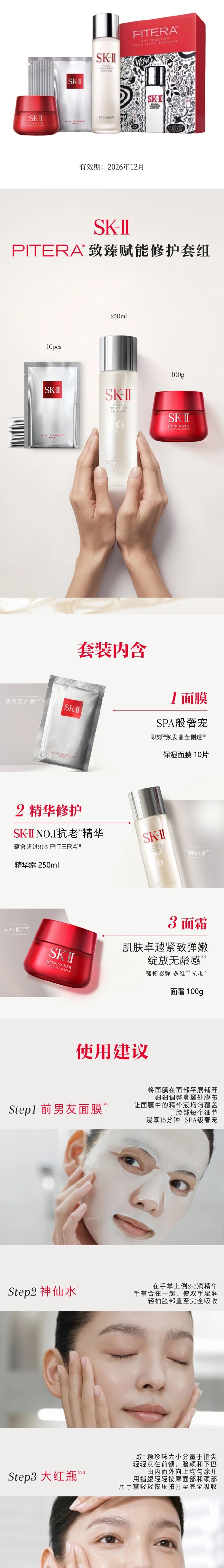 【跨境】SKII三件套(神仙水250ml+前男友10片+滋润面霜100g)(效期2026年9月-12月随机发货)赠1盒水之璨洗颜粉32粒/盒