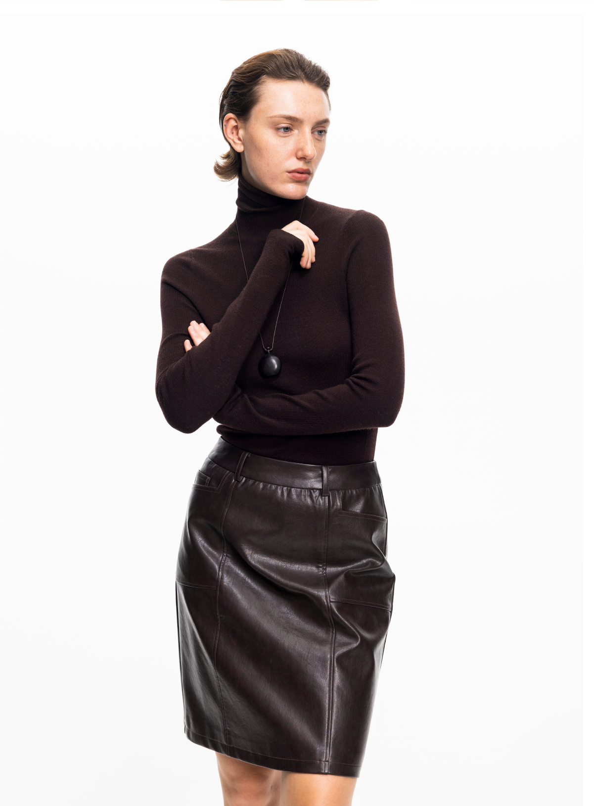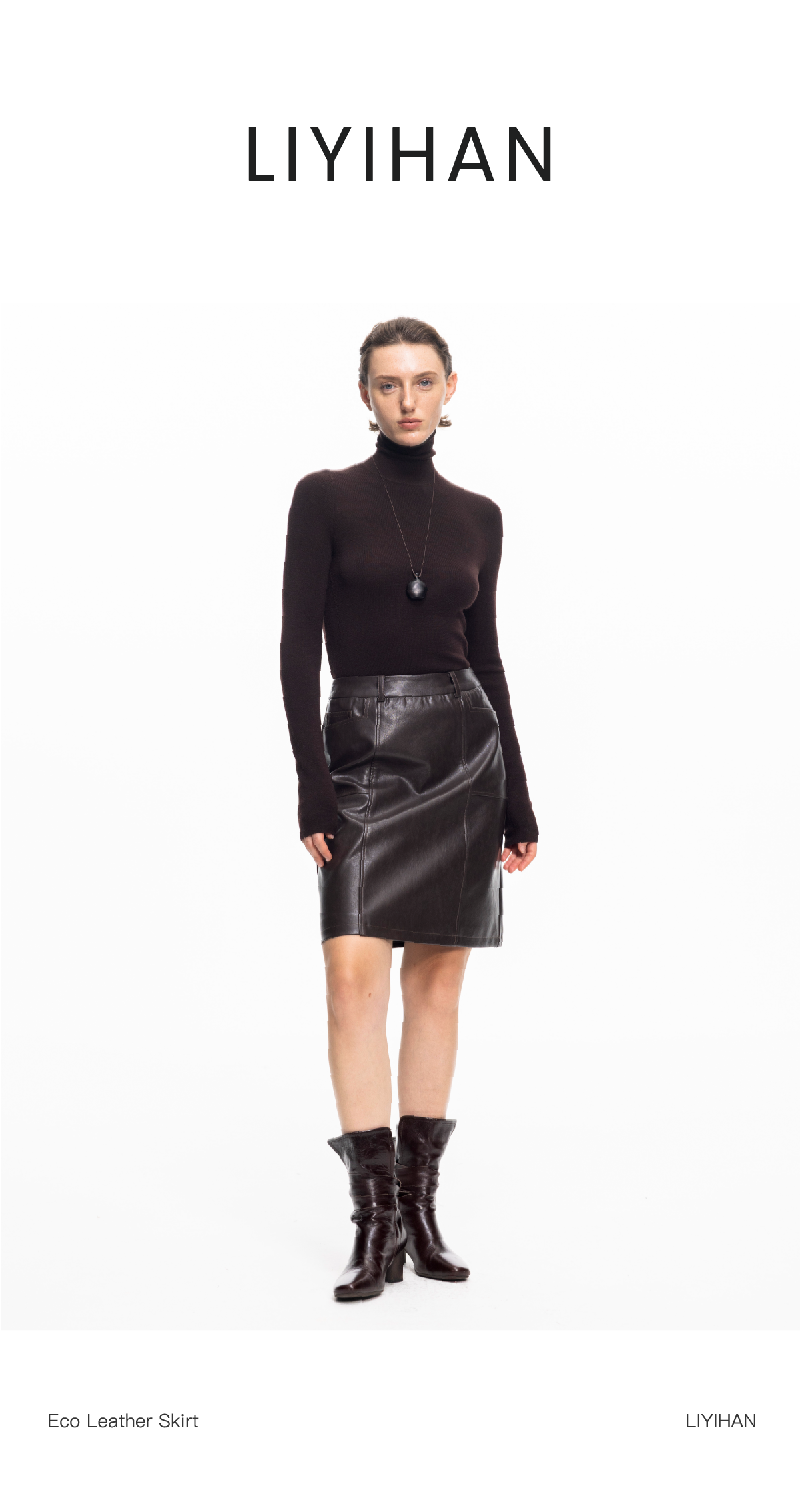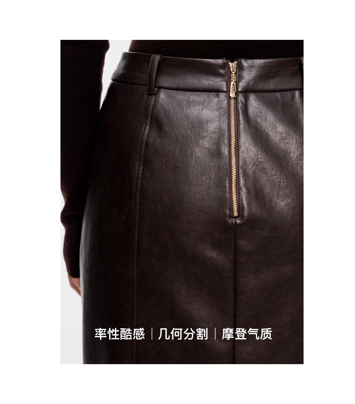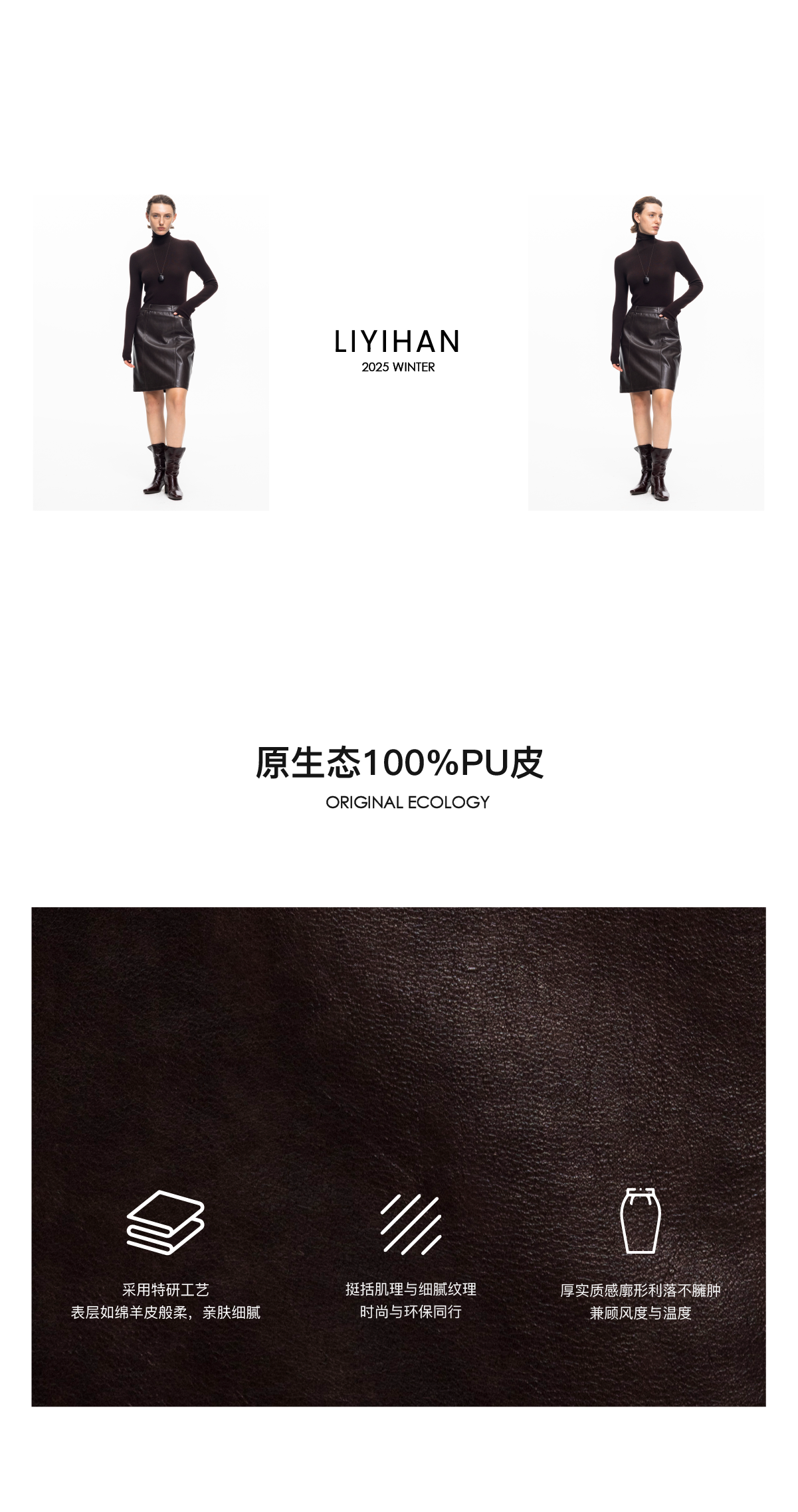LIYIHAN 2025秋冬新款法式半身裙女咖色通勤短裙小众设计感PU皮裙