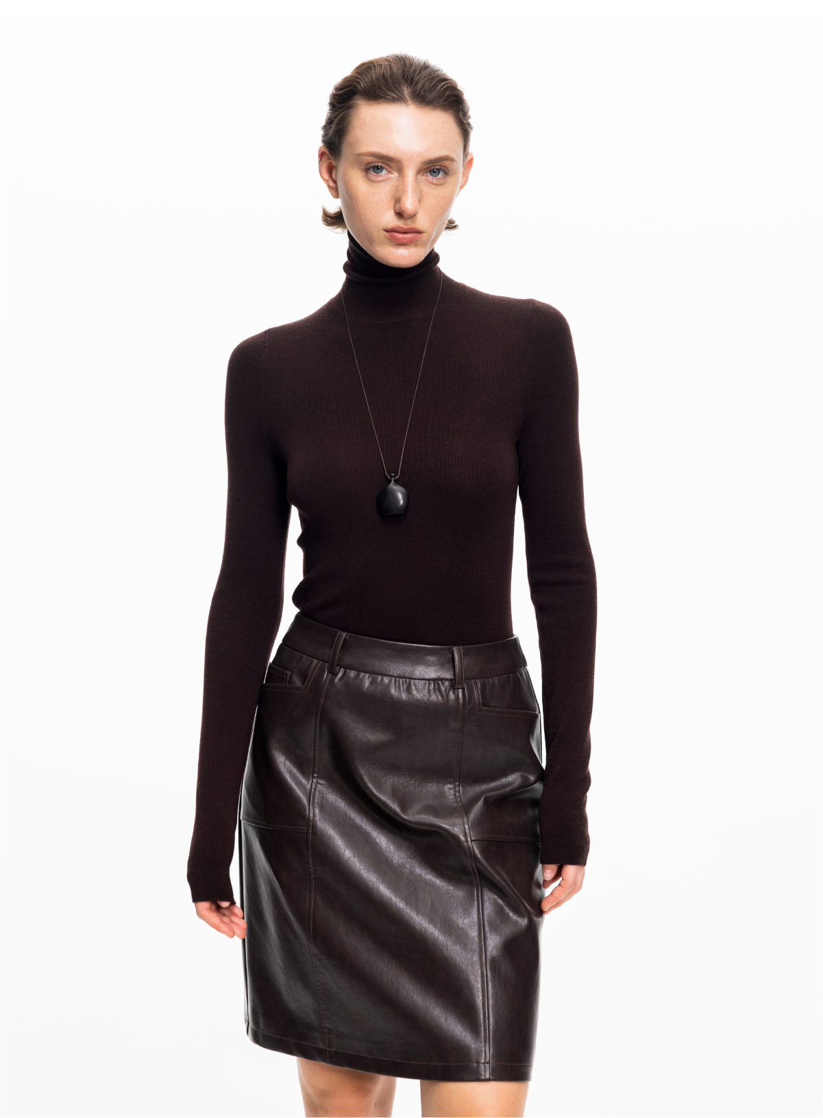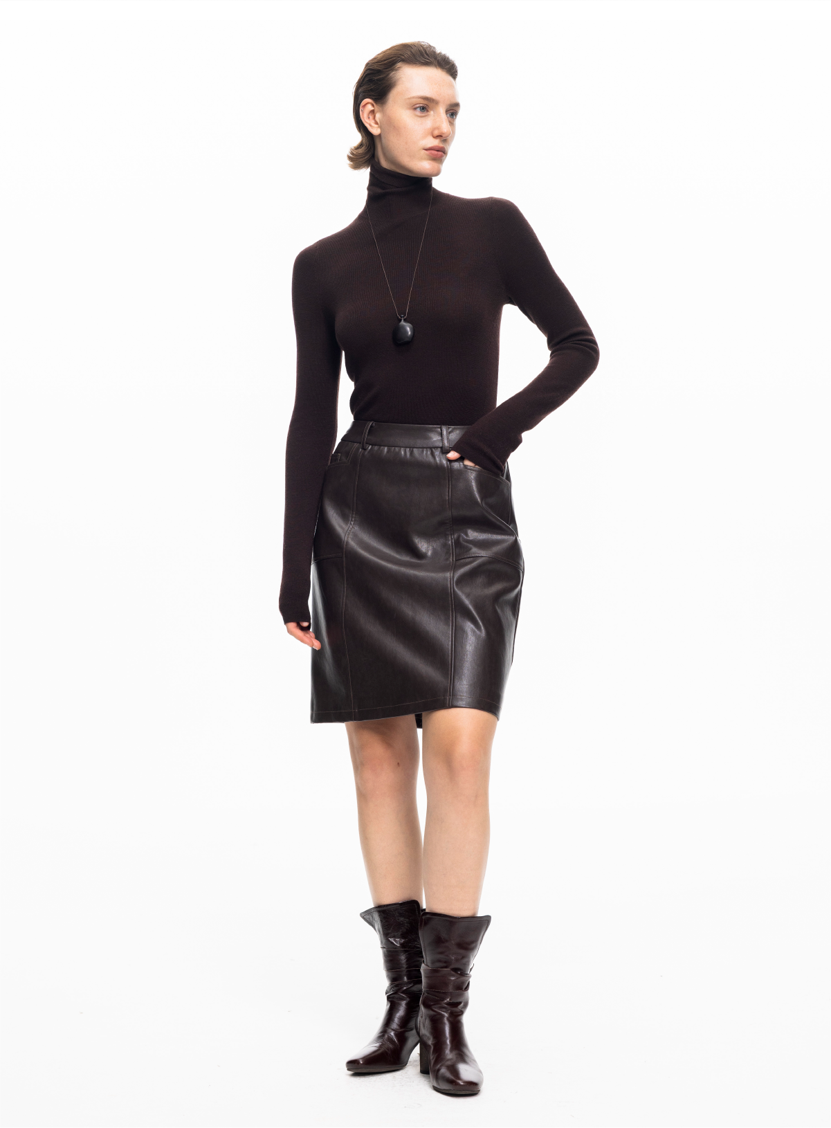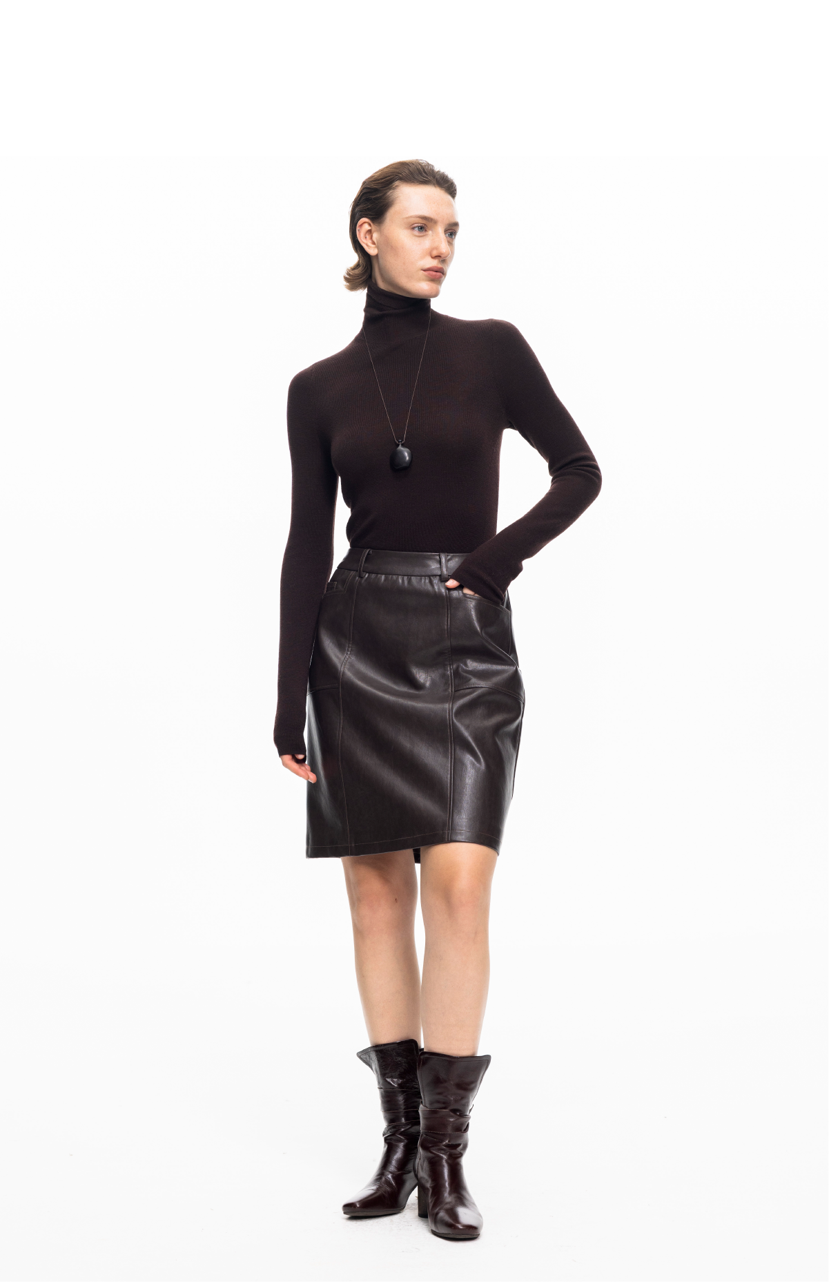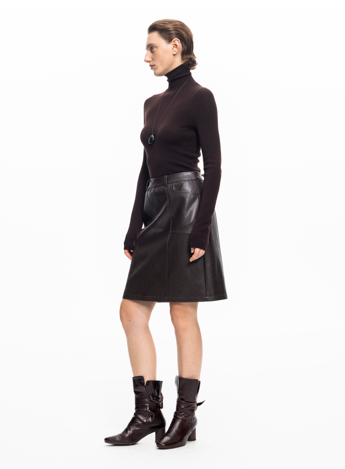 LIYIHAN 2025秋冬新款法式半身裙女咖色通勤短裙小众设计感PU皮裙
