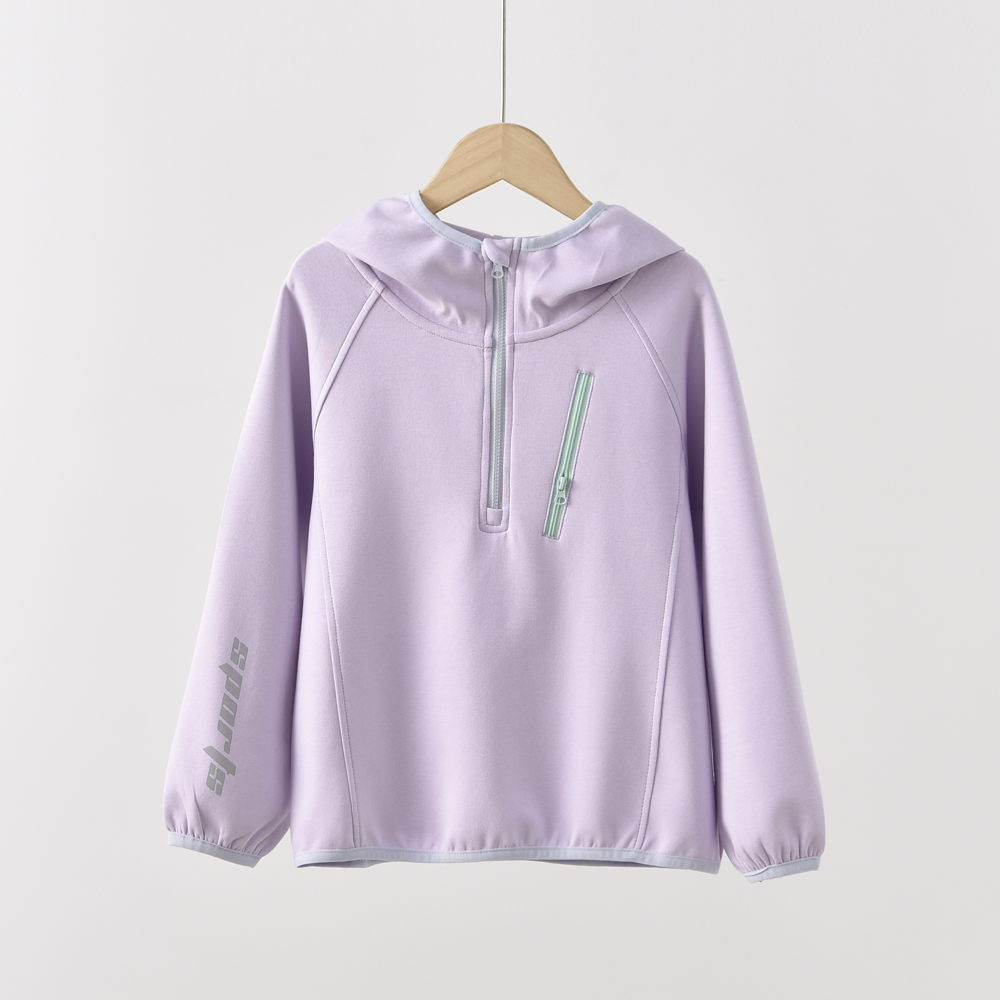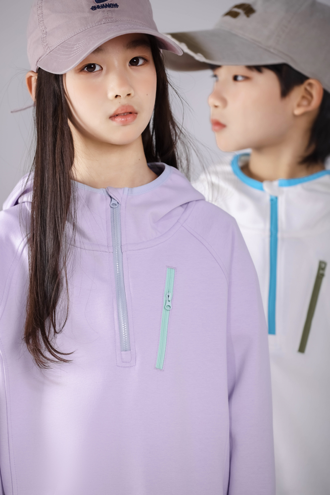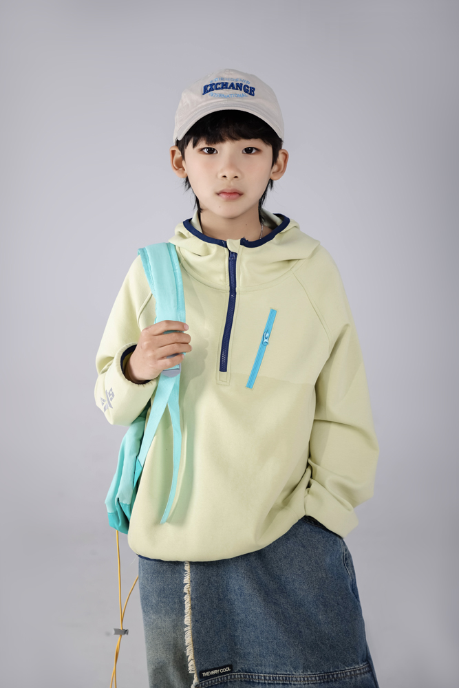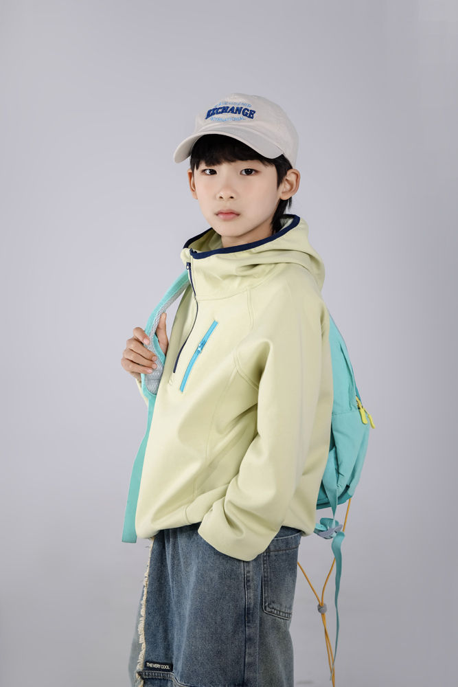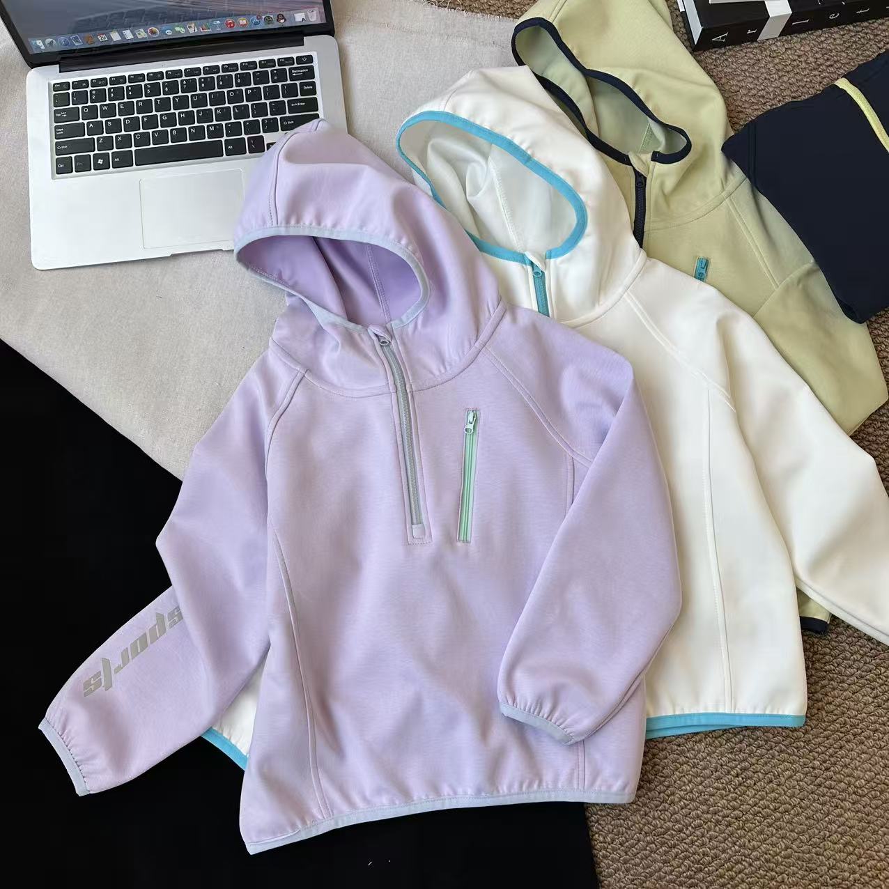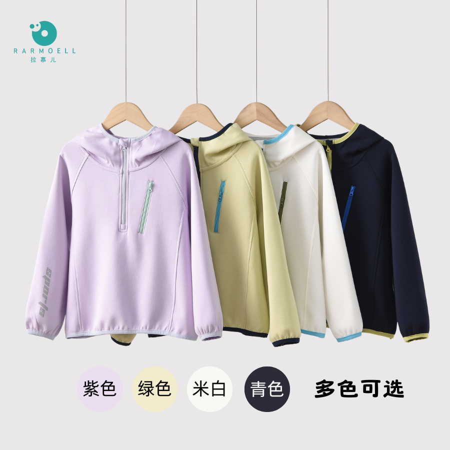 Rarmoell拉慕儿26年春款连帽上衣甜酷帅气男女童半拉链连帽套头衫防风拼色创意设计