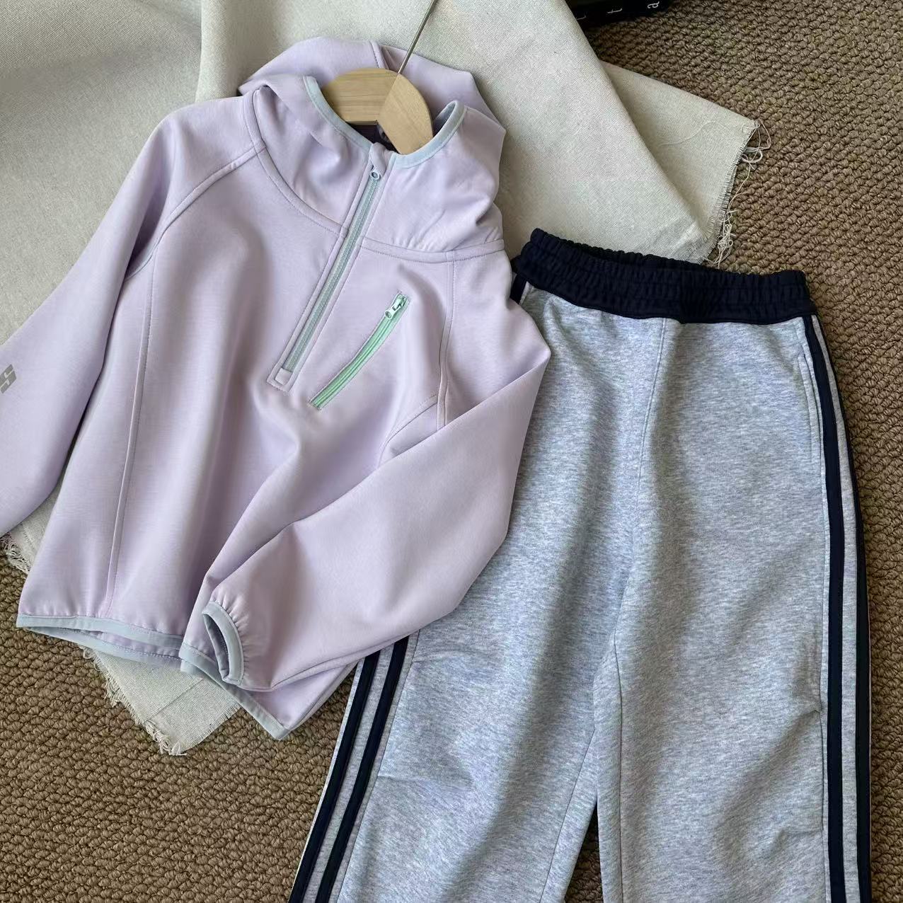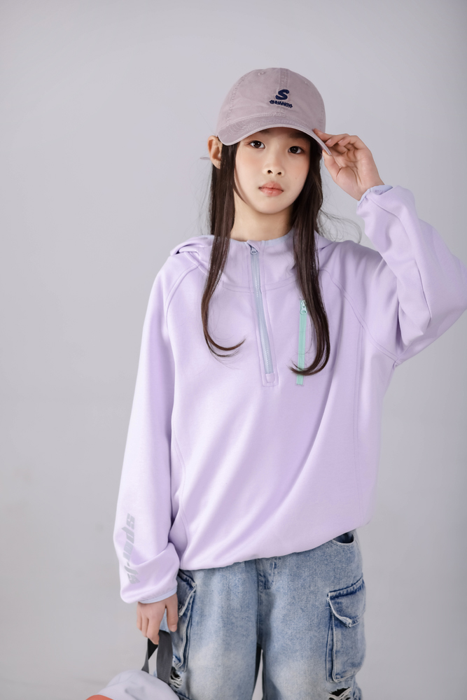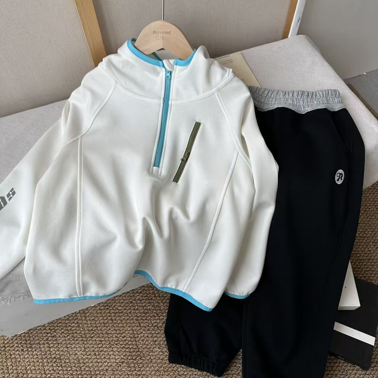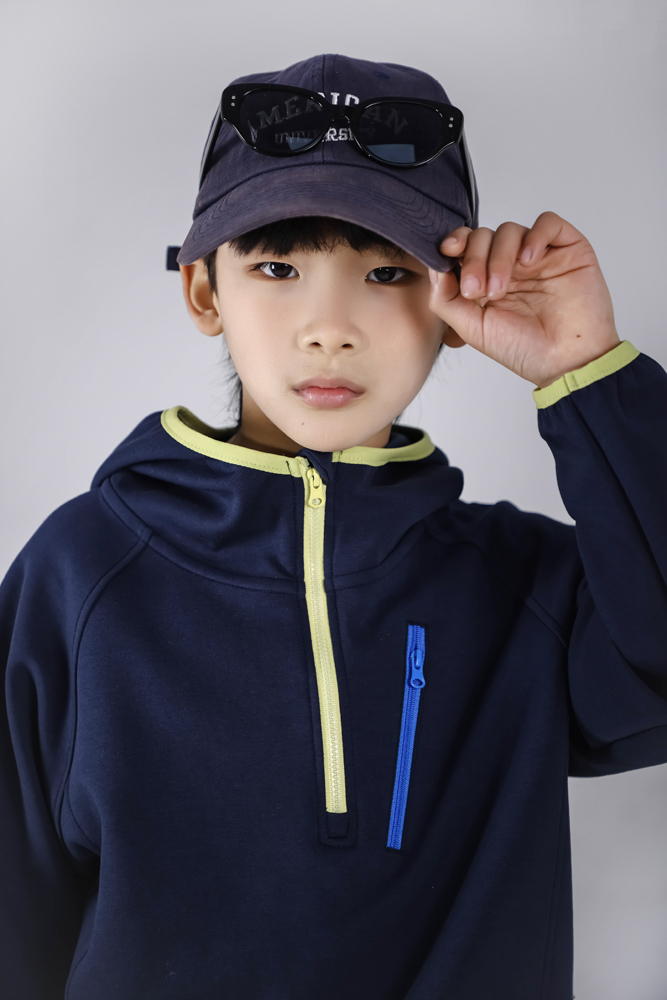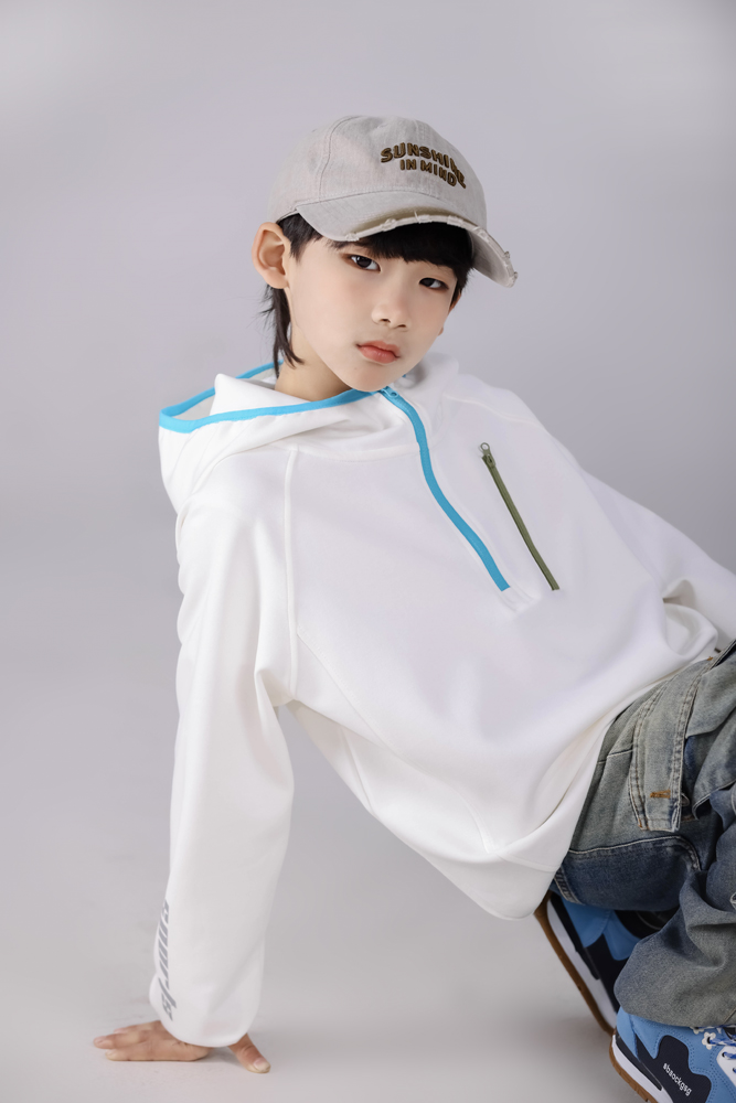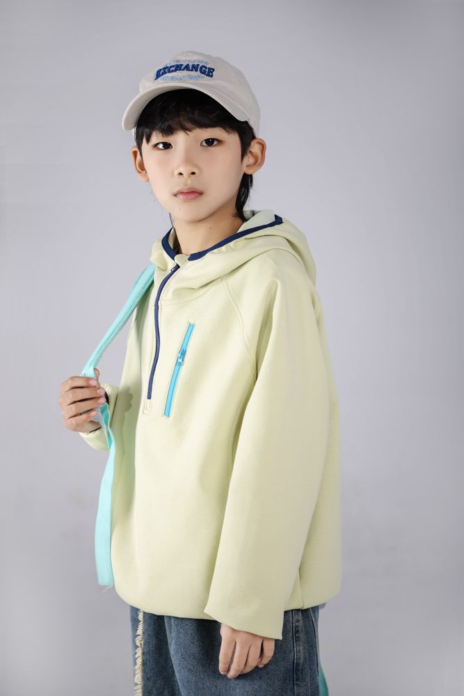 Rarmoell拉慕儿26年春款连帽上衣甜酷帅气男女童半拉链连帽套头衫防风拼色创意设计