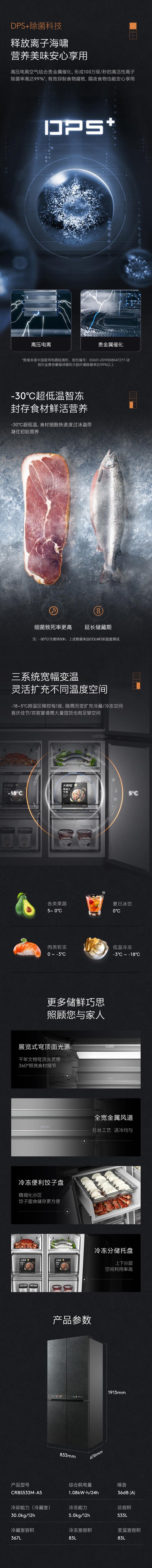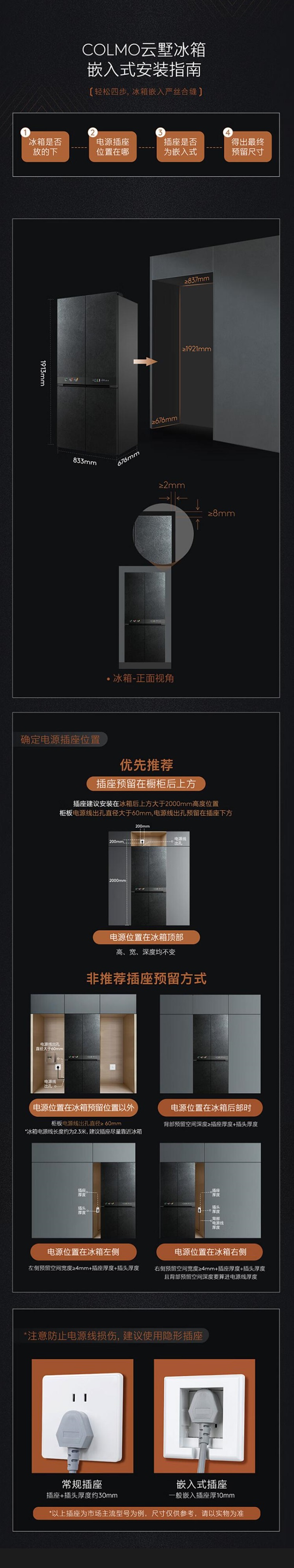 COLMO(202738 )云墅533升十字对开门超薄全嵌变频智能高端冰箱CRBS533M-A5熔幔岩