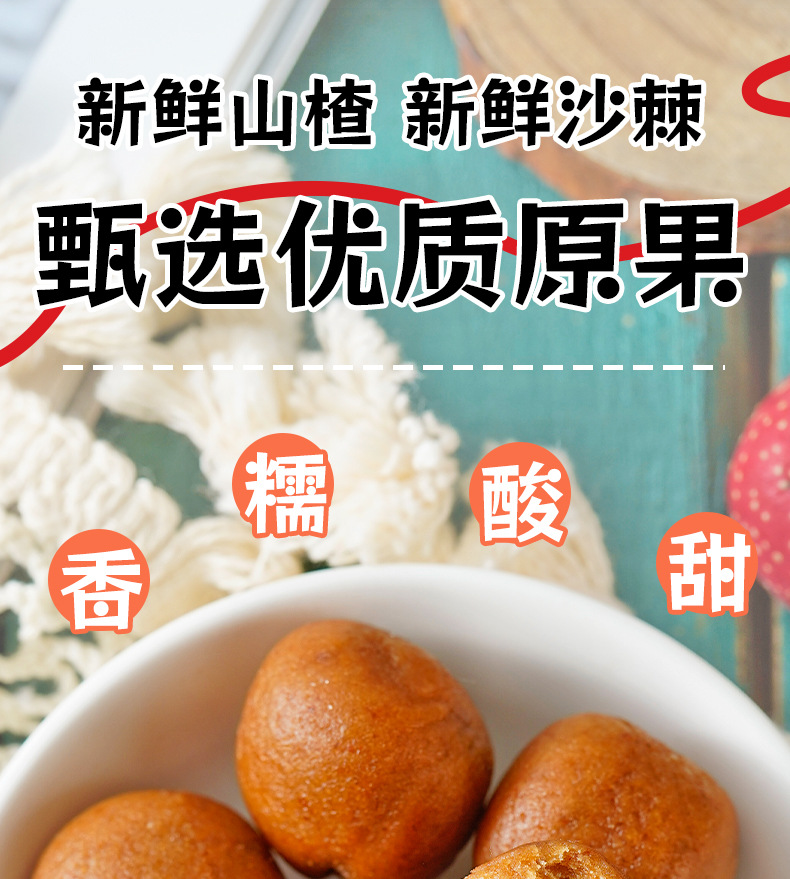 【添加益生元❗沙棘山楂丸】酸甜开“胃”甄选品质原料制作,0蔗糖添加,美味健康无负担,小零食品酸甜追剧解馋即食L