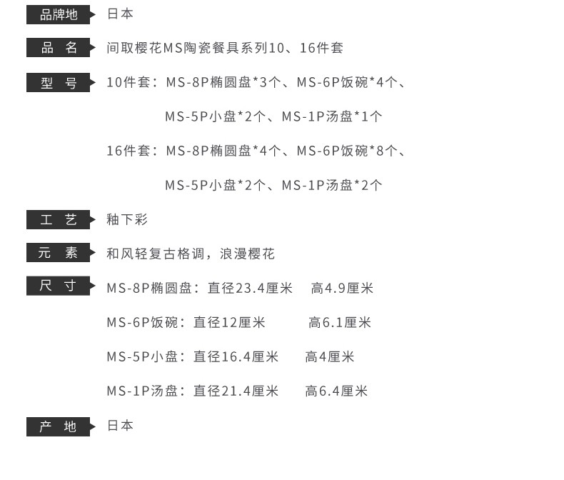 MINOYAKI/美浓烧 日本进口间取樱花餐具碗盘碟10件套装JPY带授权招加盟代理