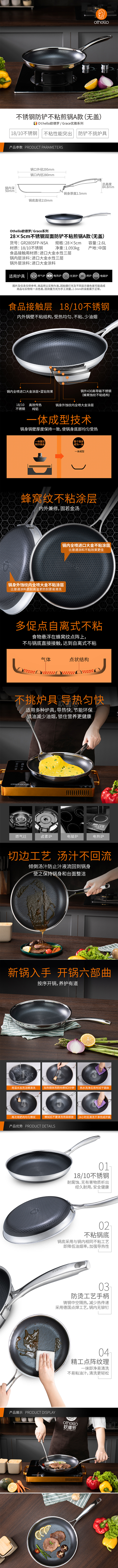 欧德罗28cm不锈钢双面防铲不粘煎锅 【无盖】