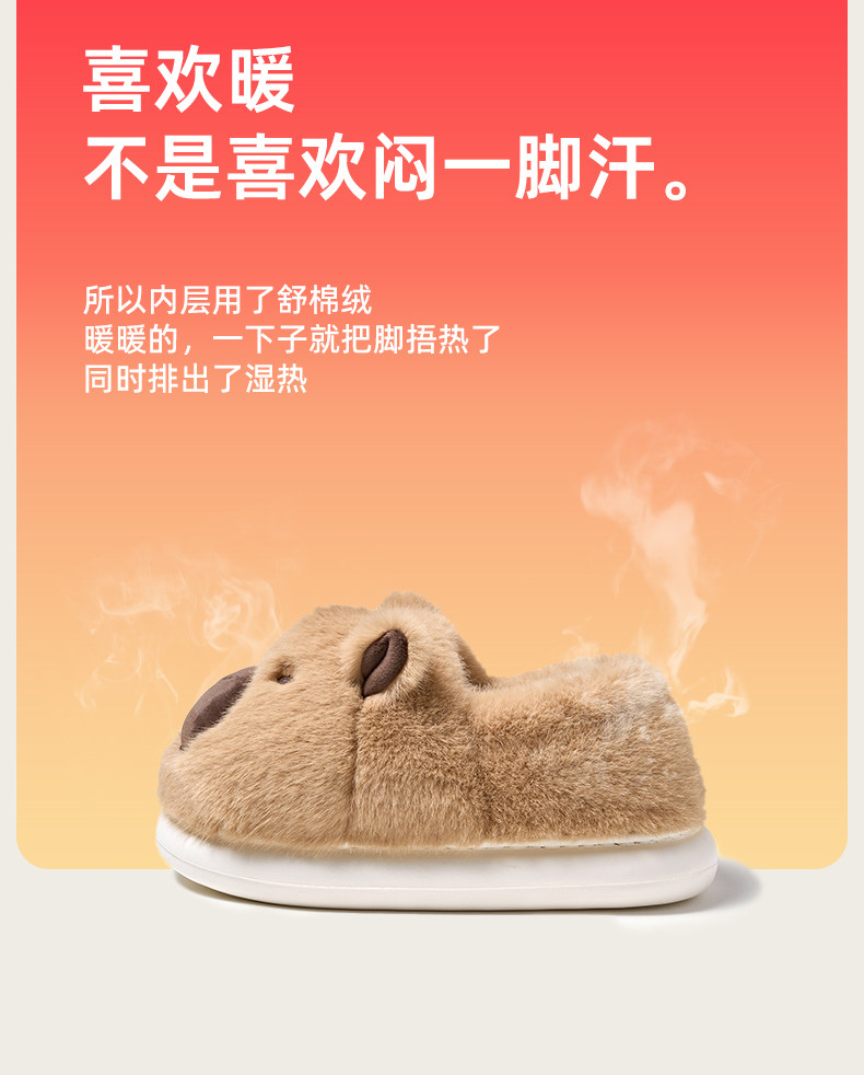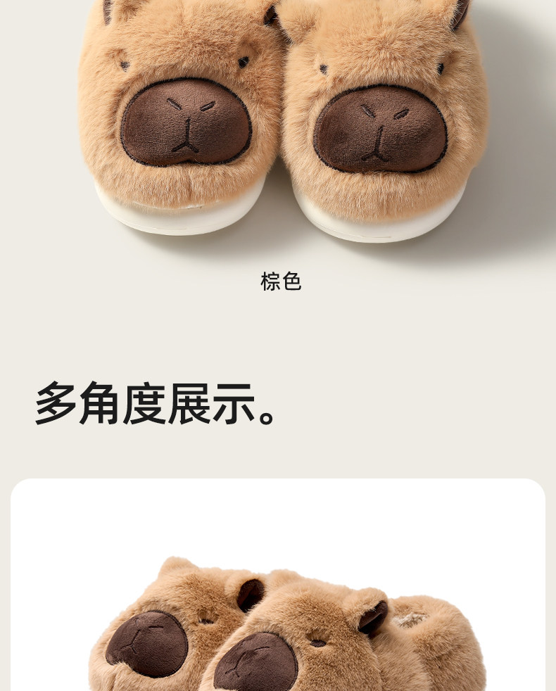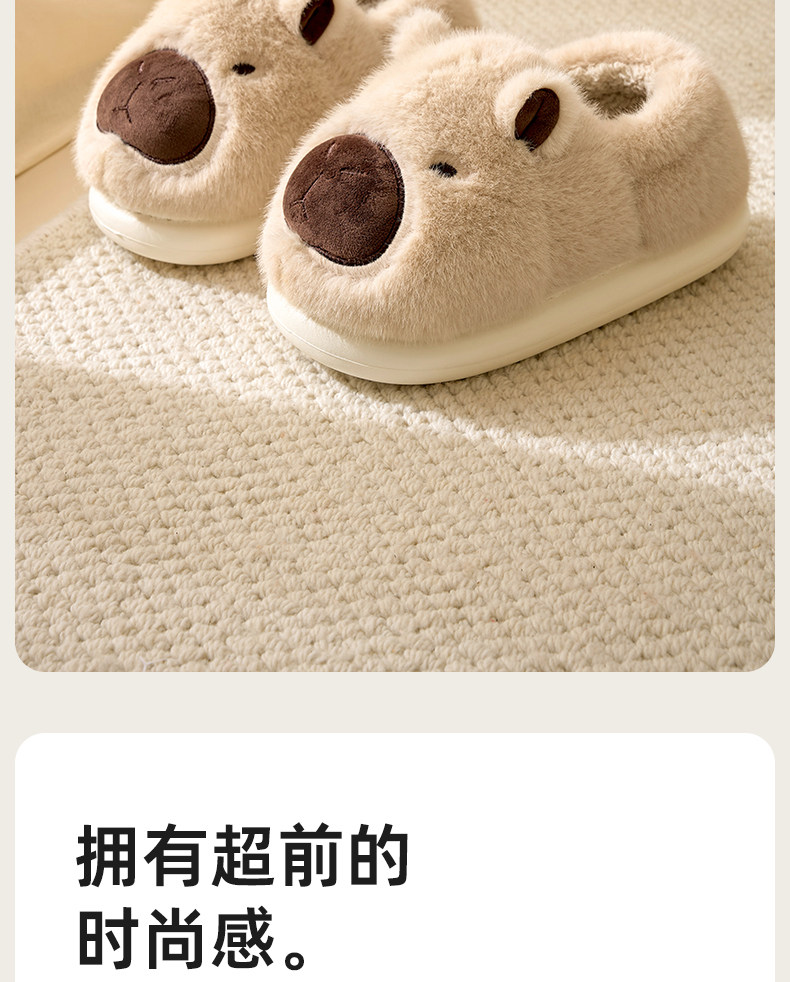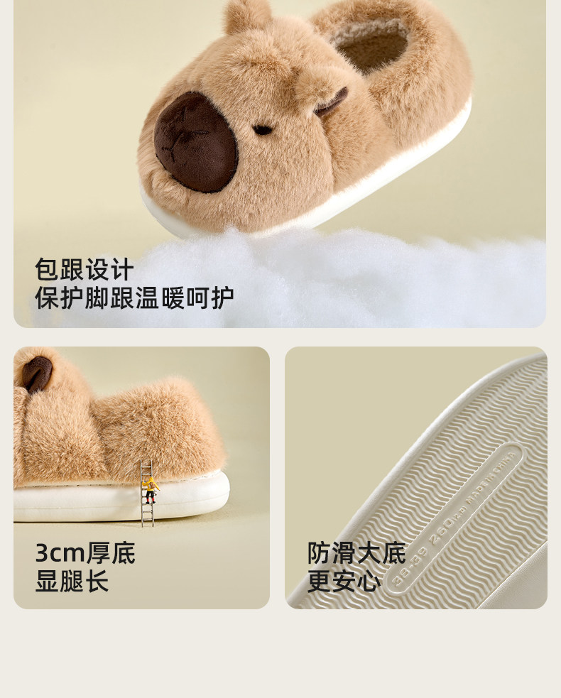 卡皮巴拉棉拖鞋女 2025新款包跟加毛绒情侣秋冬季可爱家居男士棉鞋3.247