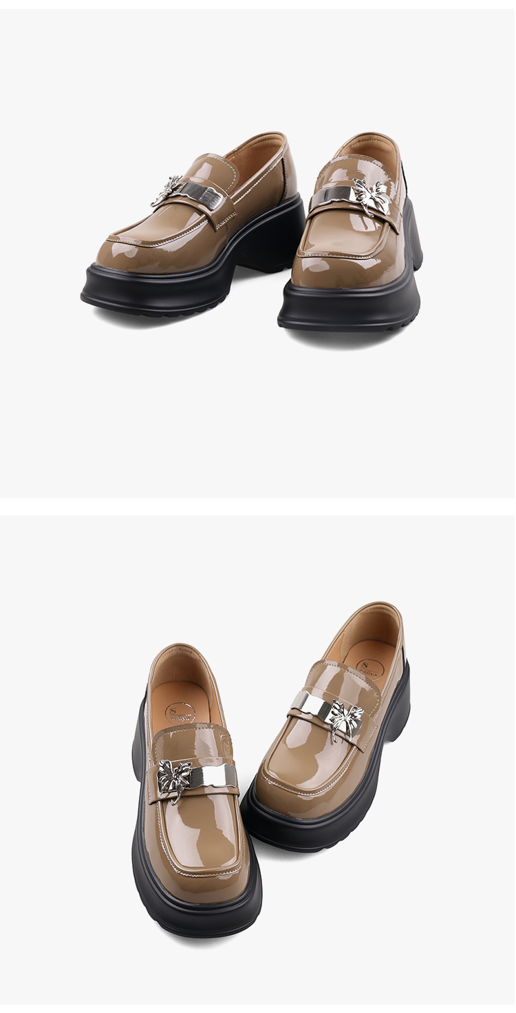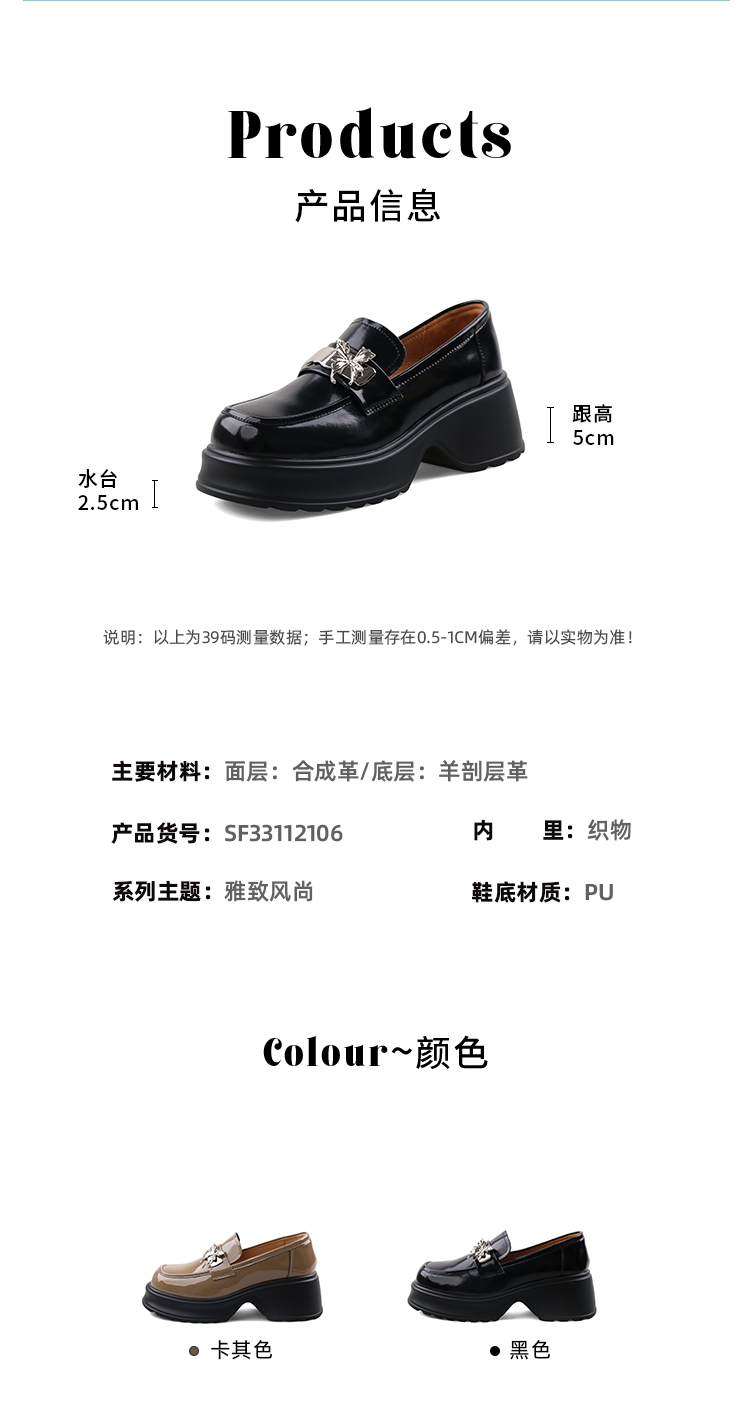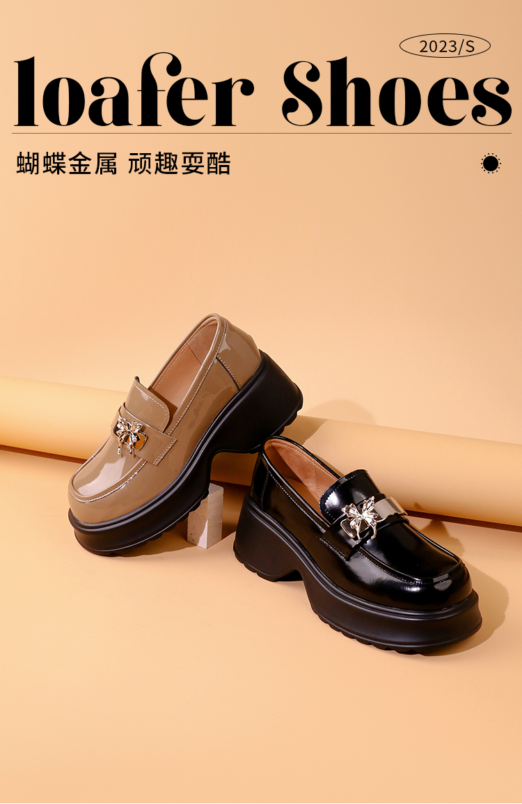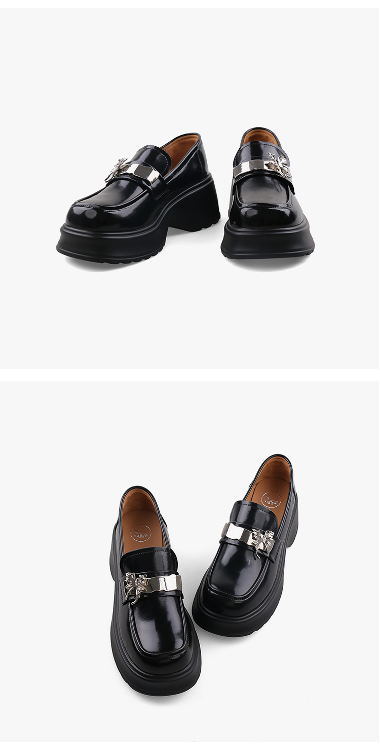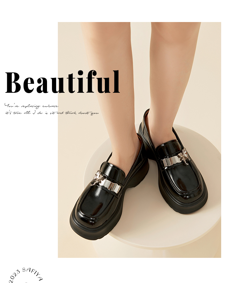Safiya/索菲娅2023秋季新品新潮个性蝴蝶金属扣粗跟厚底乐福鞋 SF33112057