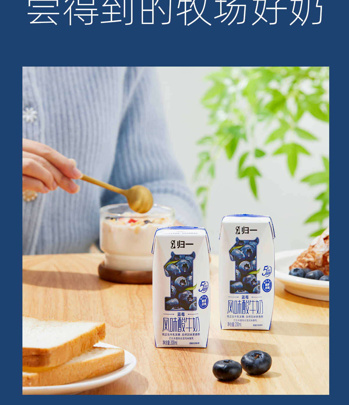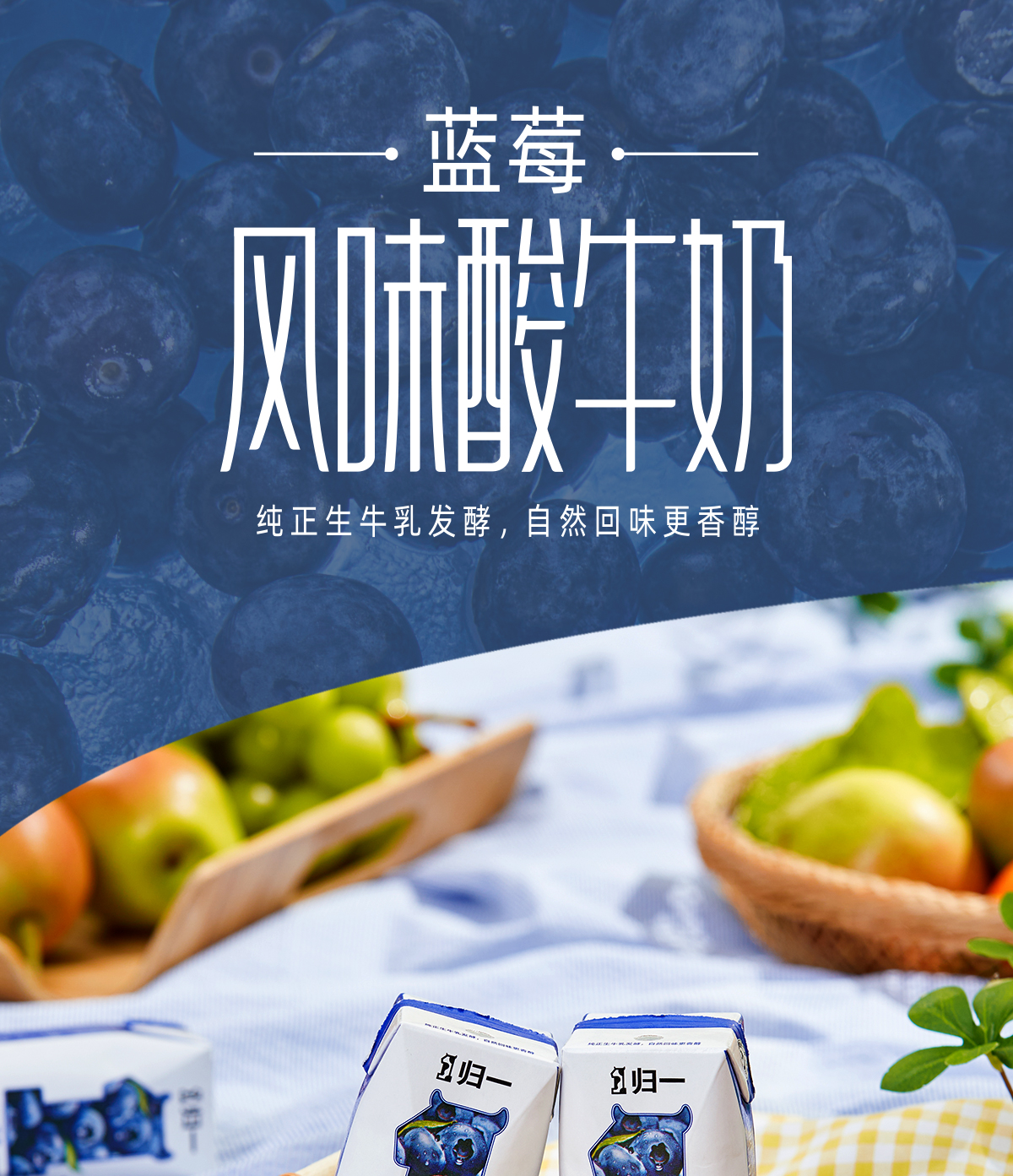 归一蓝莓风味酸牛奶200mL*12盒*2箱生牛乳发酵酸奶