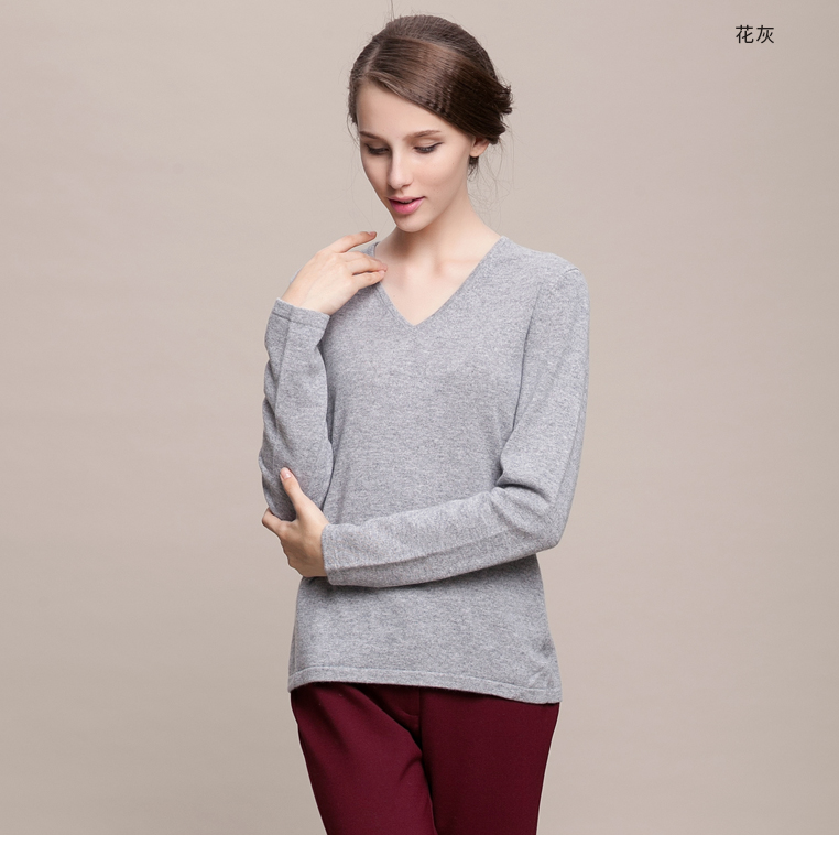羊绒世家秋冬女装反季促销新款纯色毛衣女套头V领针织衫女羊绒衫
