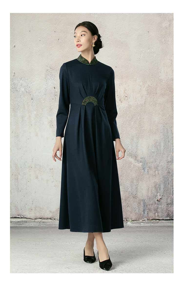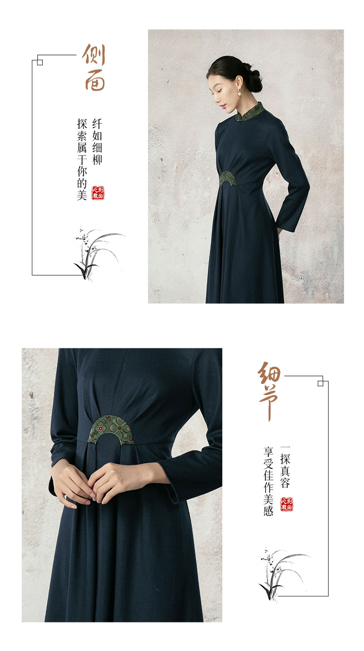 吉祥衣家新中式国风羊毛夏款裙子气质优雅轻奢女装林下幽姿连衣裙