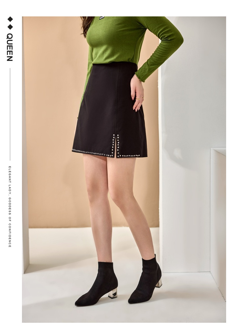 7/27奢姿2024年秋季新款大码女装气质高腰裙子胖妹妹设计感开叉半身裙9943460300