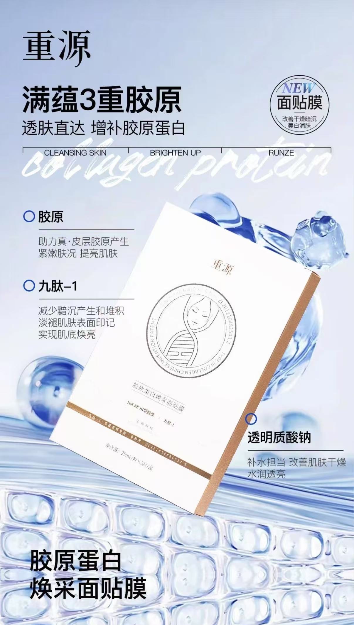 【114元会员福利】重源胶原蛋白焕采面贴膜25ml*3片