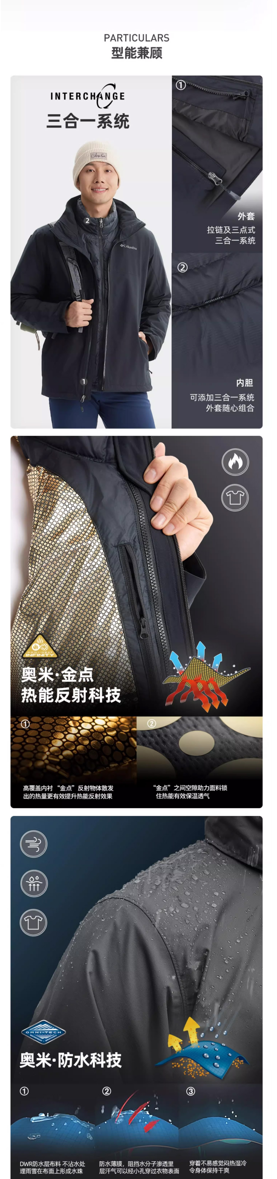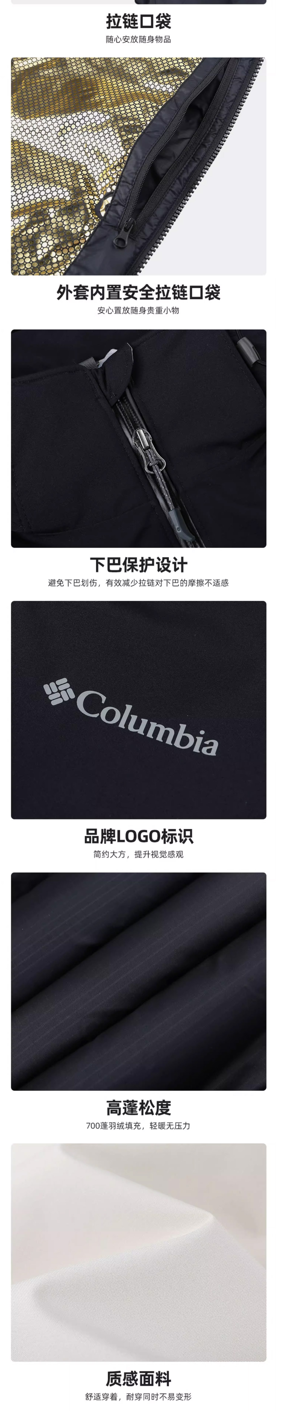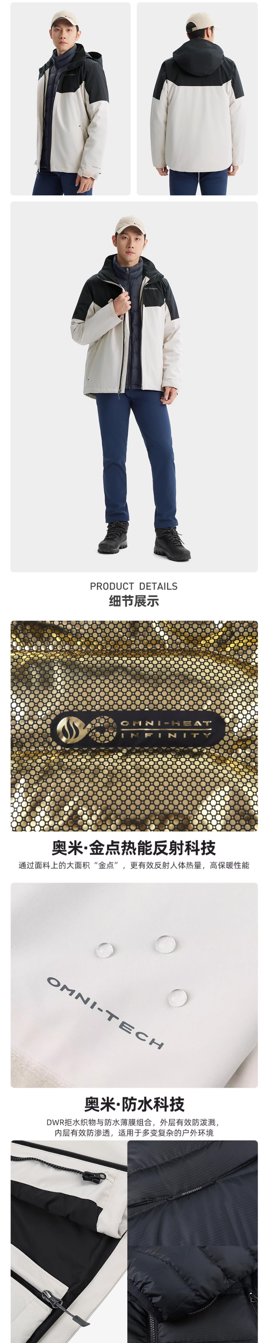 哥伦比亚男装金点防水700蓬鸭绒内胆三合一冲锋衣WE6671278