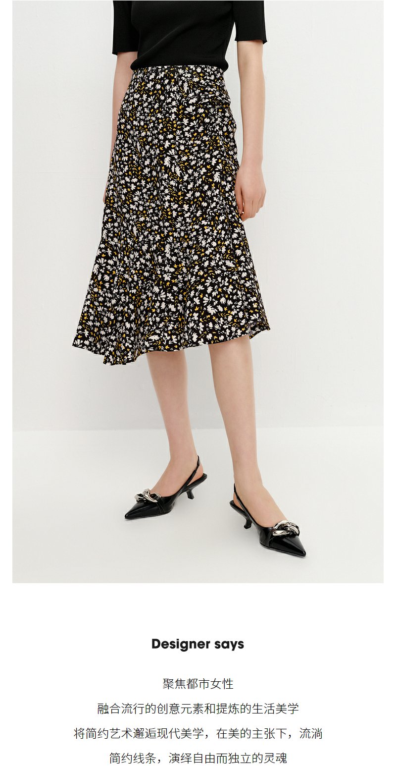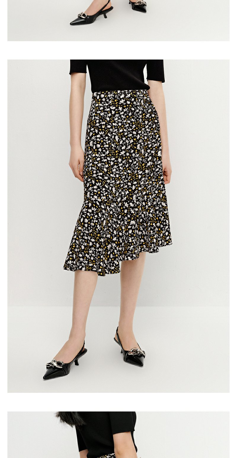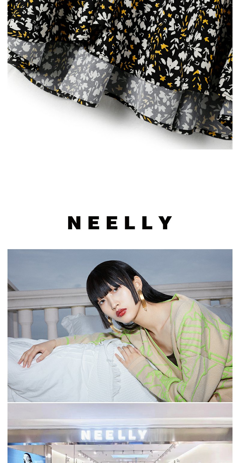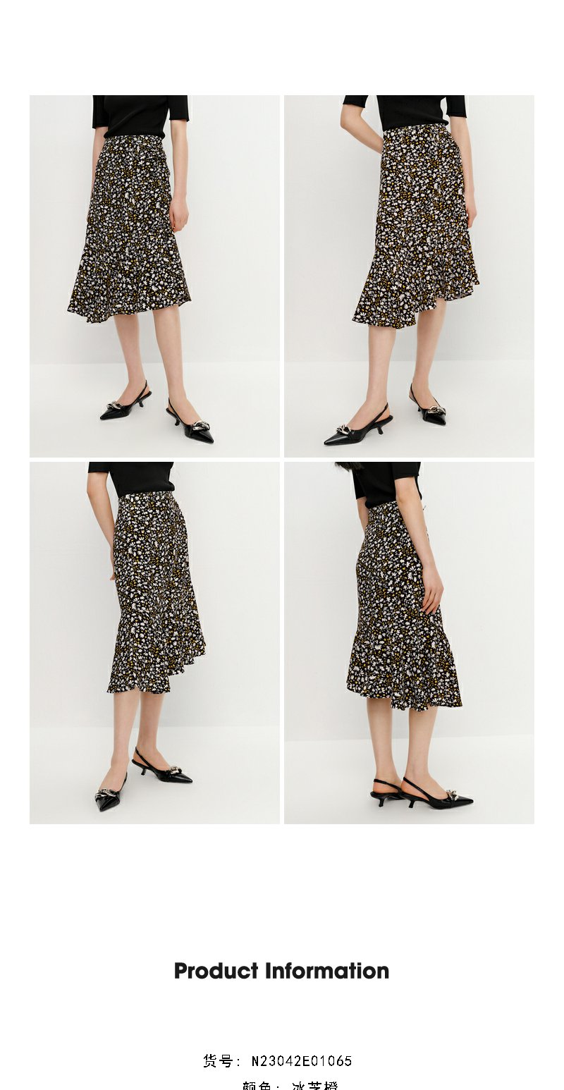 NEELLY纳俪商场同款优雅碎花半身裙女不规则包臀A字裙中长款夏季N23042E01065