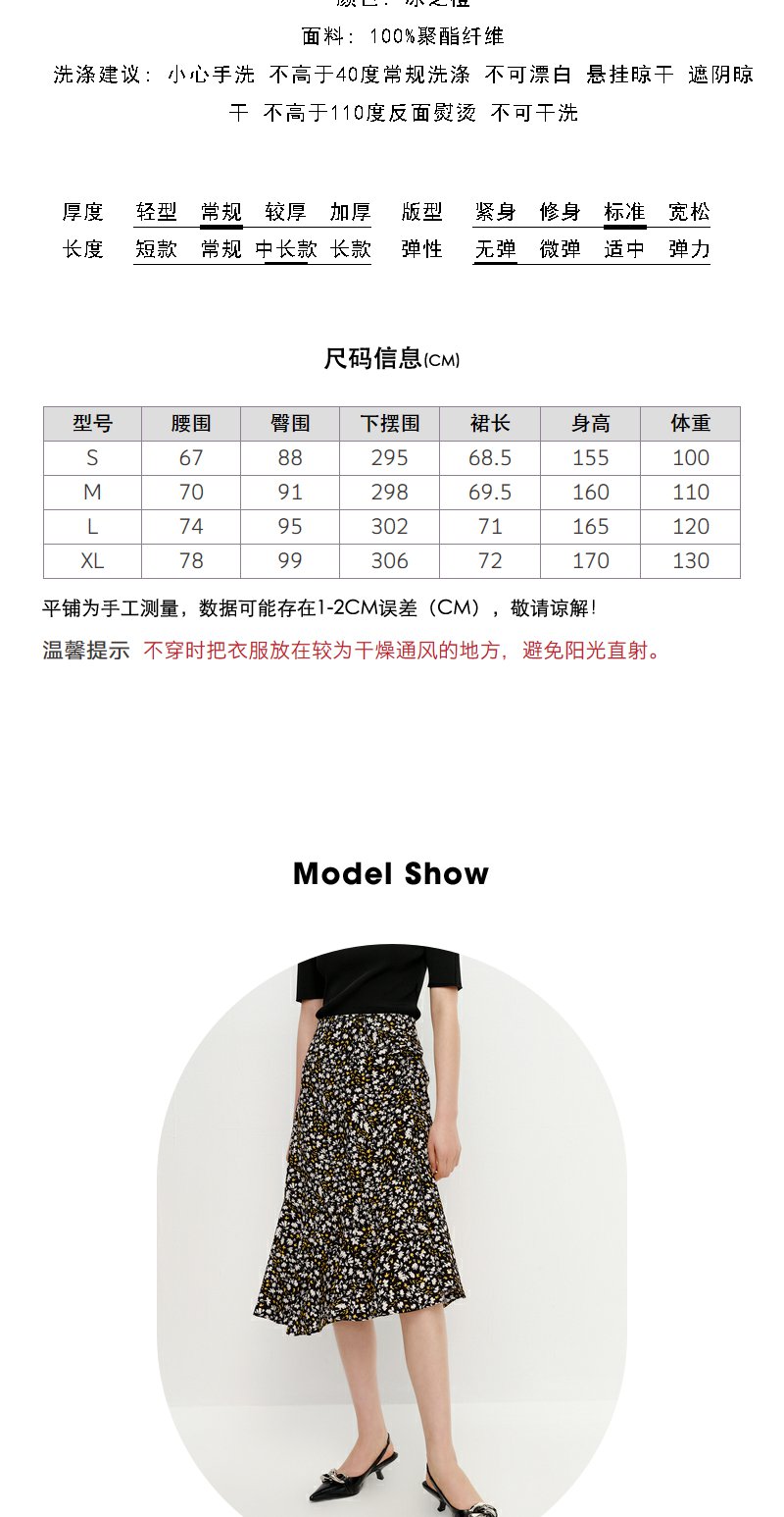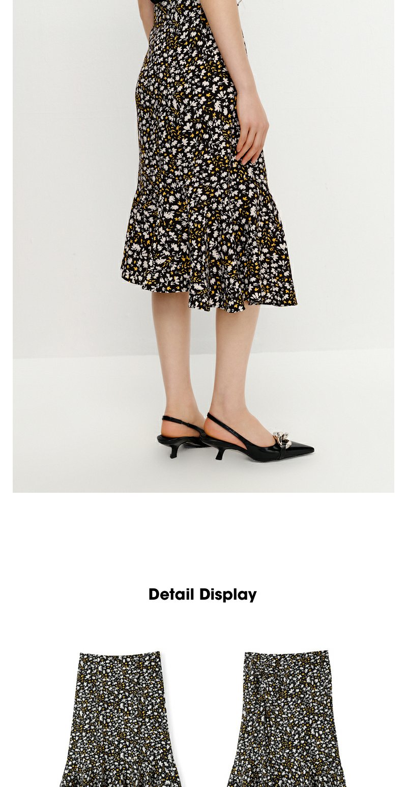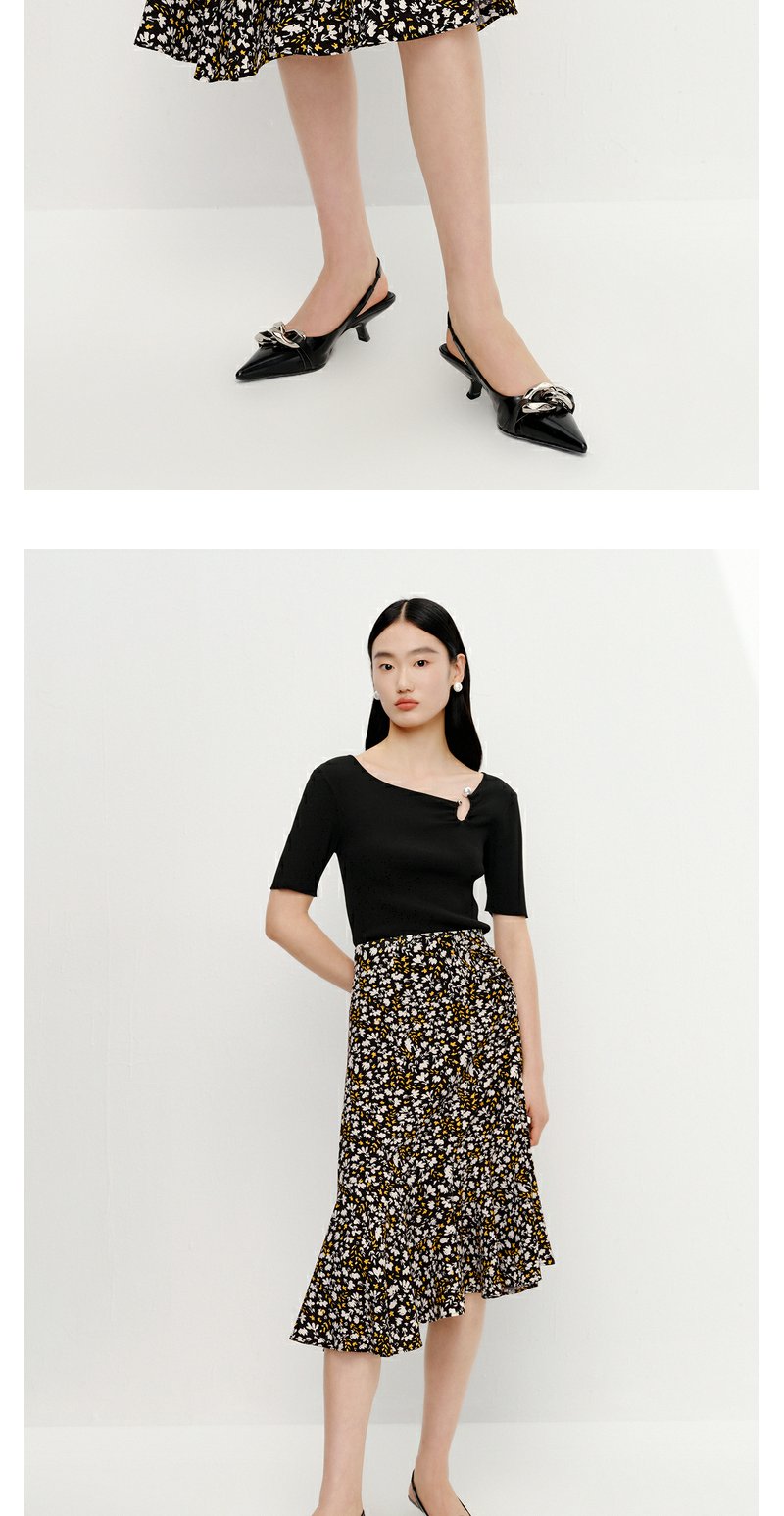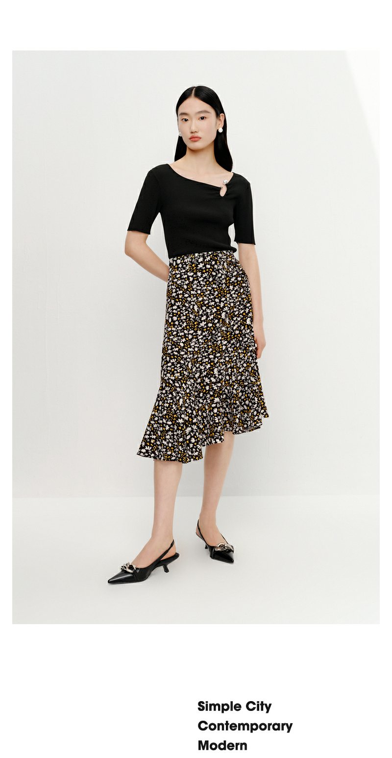 NEELLY纳俪商场同款优雅碎花半身裙女不规则包臀A字裙中长款夏季N23042E01065