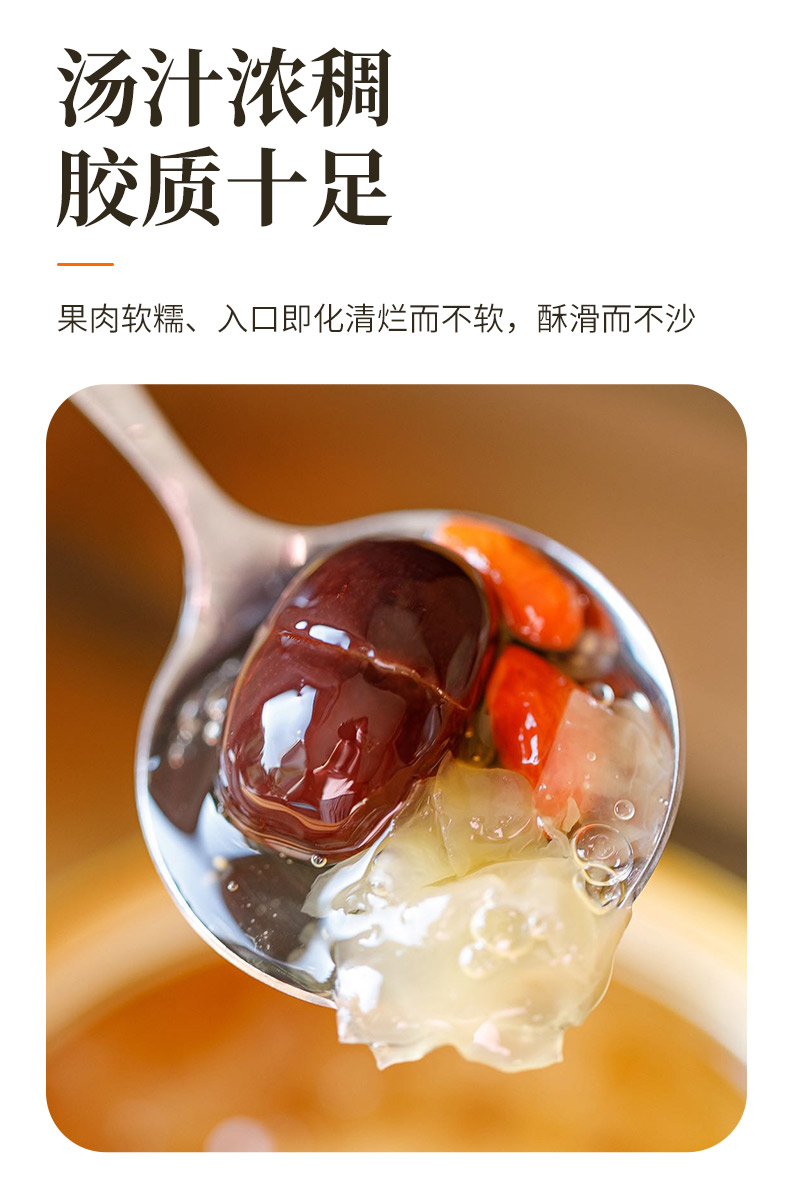 每碗还添加了软糯爽滑的银耳,健康养生又好喝,汤汁浓稠,胶质十足;