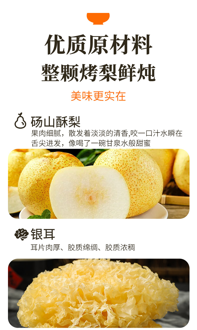 精选原料,枇杷+梨,去皮去核,古法文火慢炖,清润滋养;