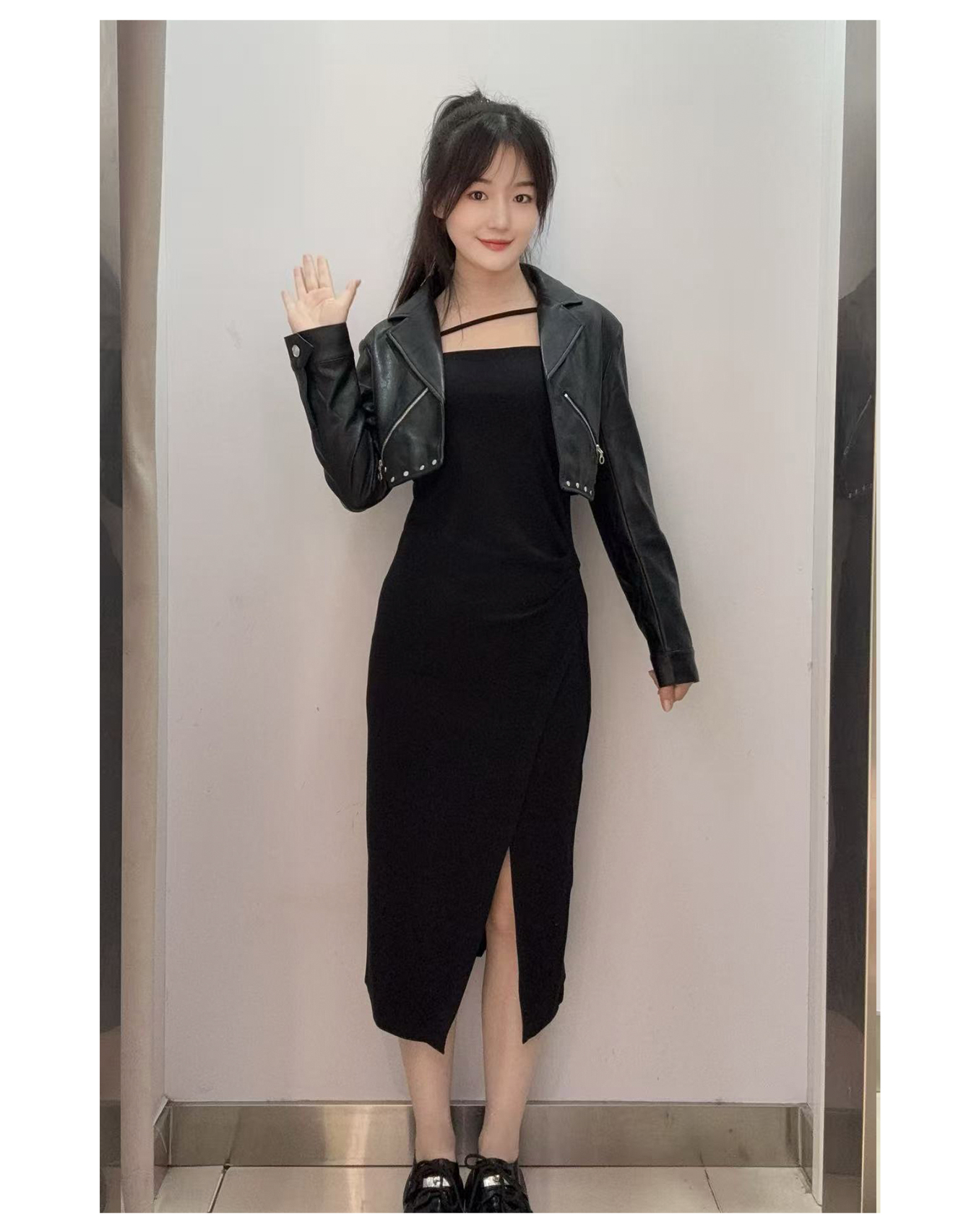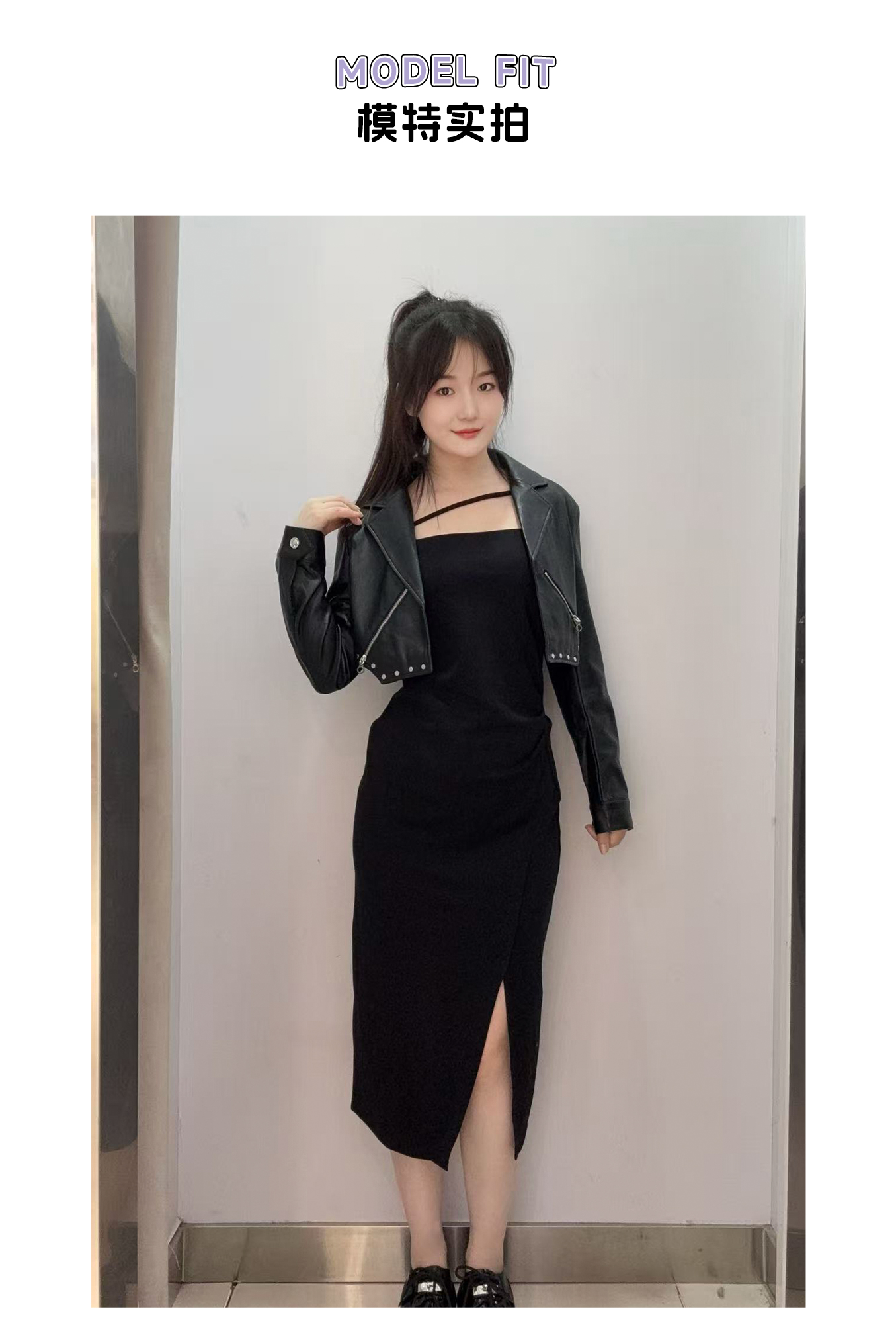 &X设计师女装吊带性感修身包臀气质收腰套装长裙824114820B 黑色