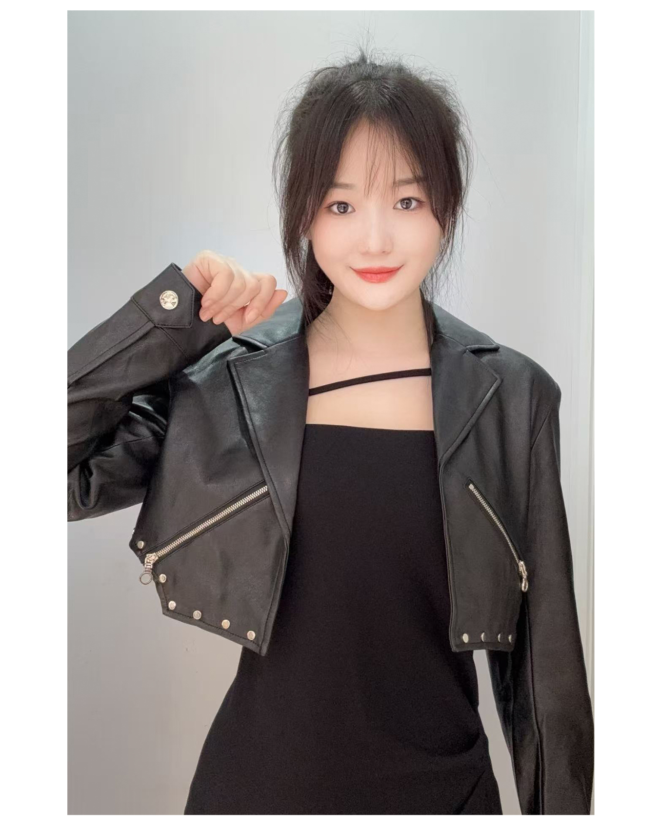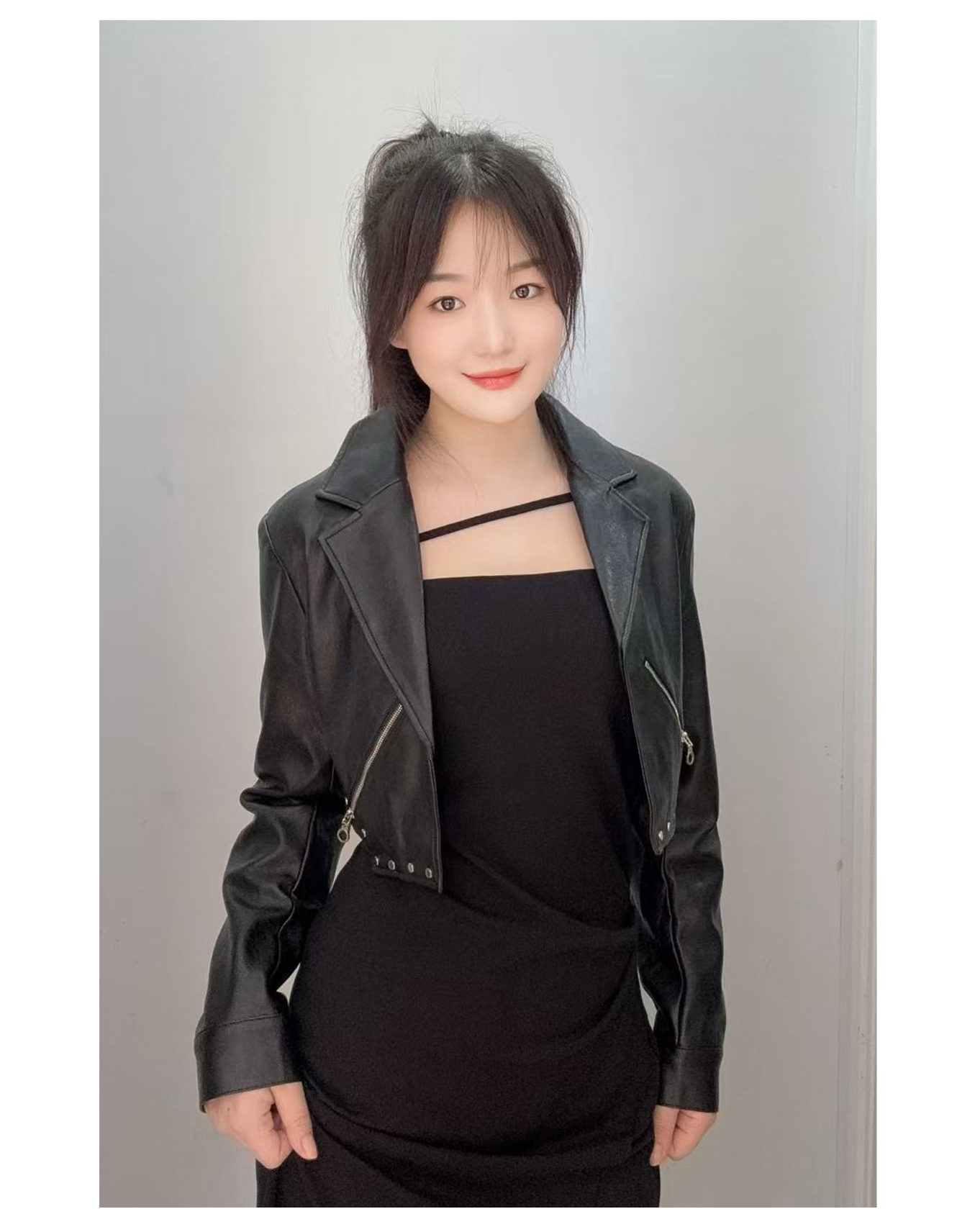 P&X设计师女装秋 长袖翻领百搭修身打底短款T恤 824302194 卡其