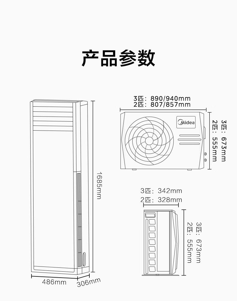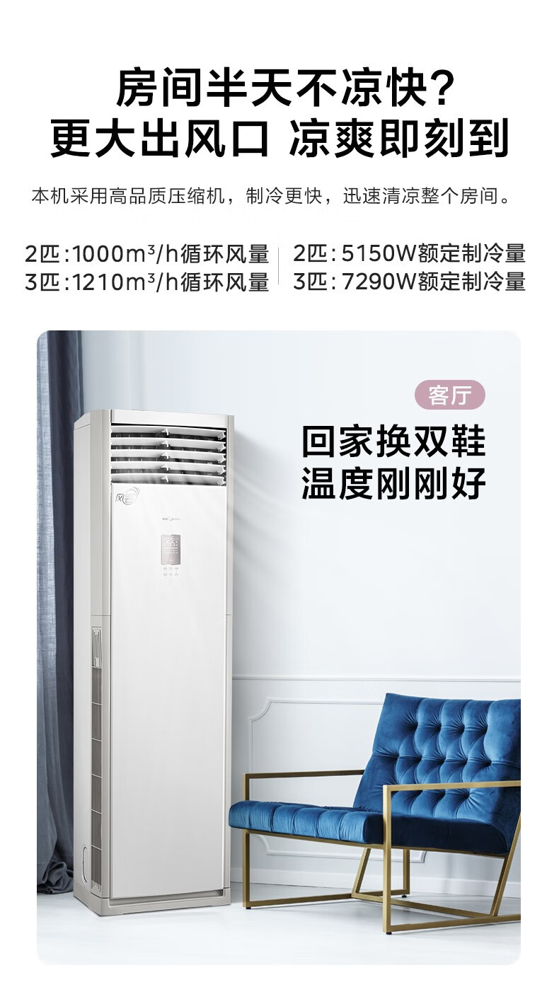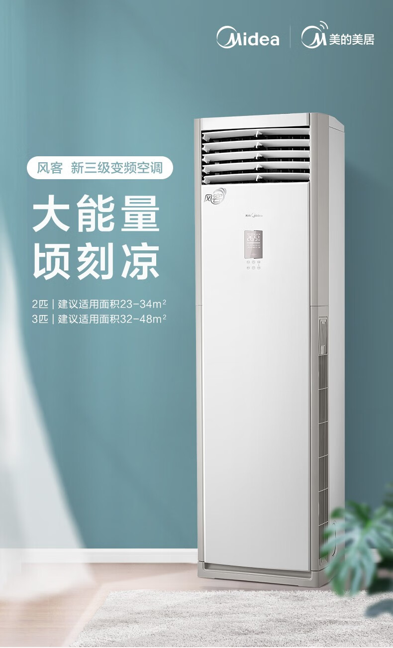 美的(Midea)KFR-72LW/N8MFB3 空调柜机 风客 变频冷暖方形柜机大风量设计落地式立式客厅 3匹