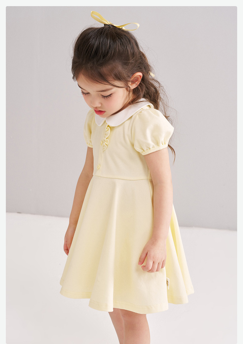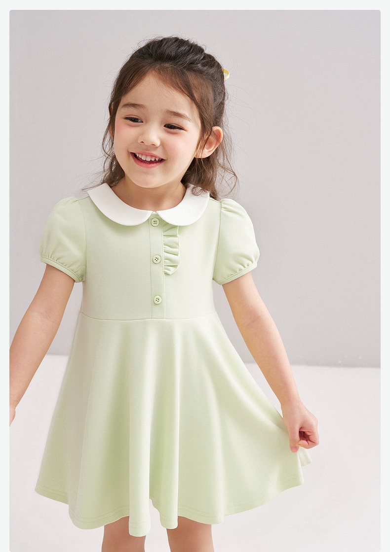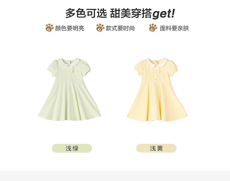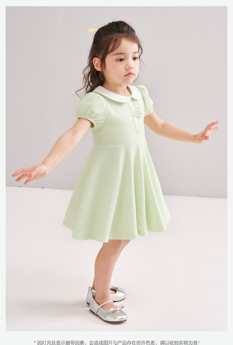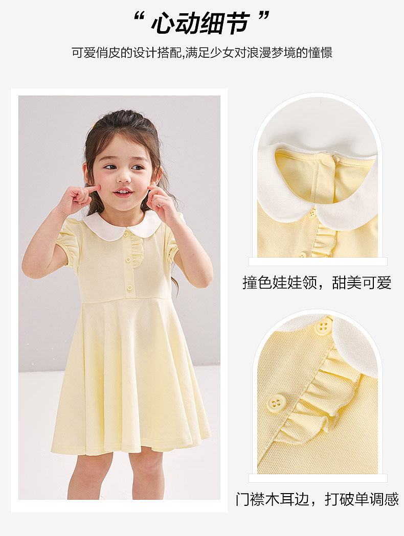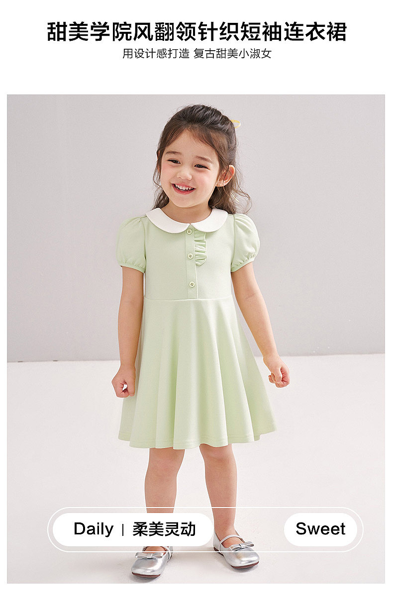 笛莎/Deesha 松饼熊2026年夏季新款童装女童甜美学院风翻领针织短袖连衣裙