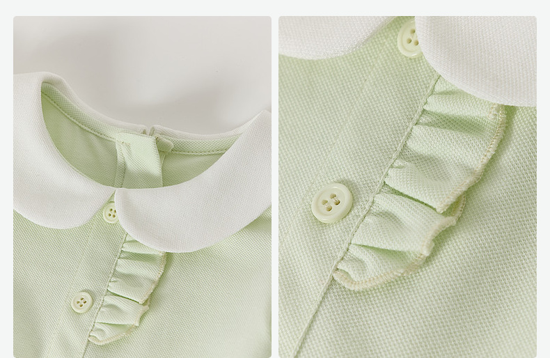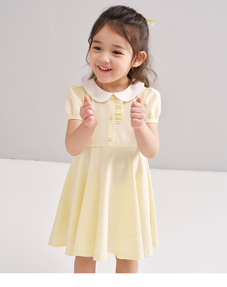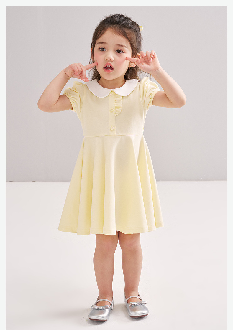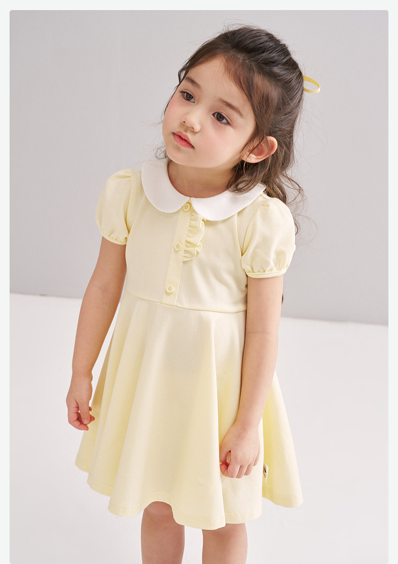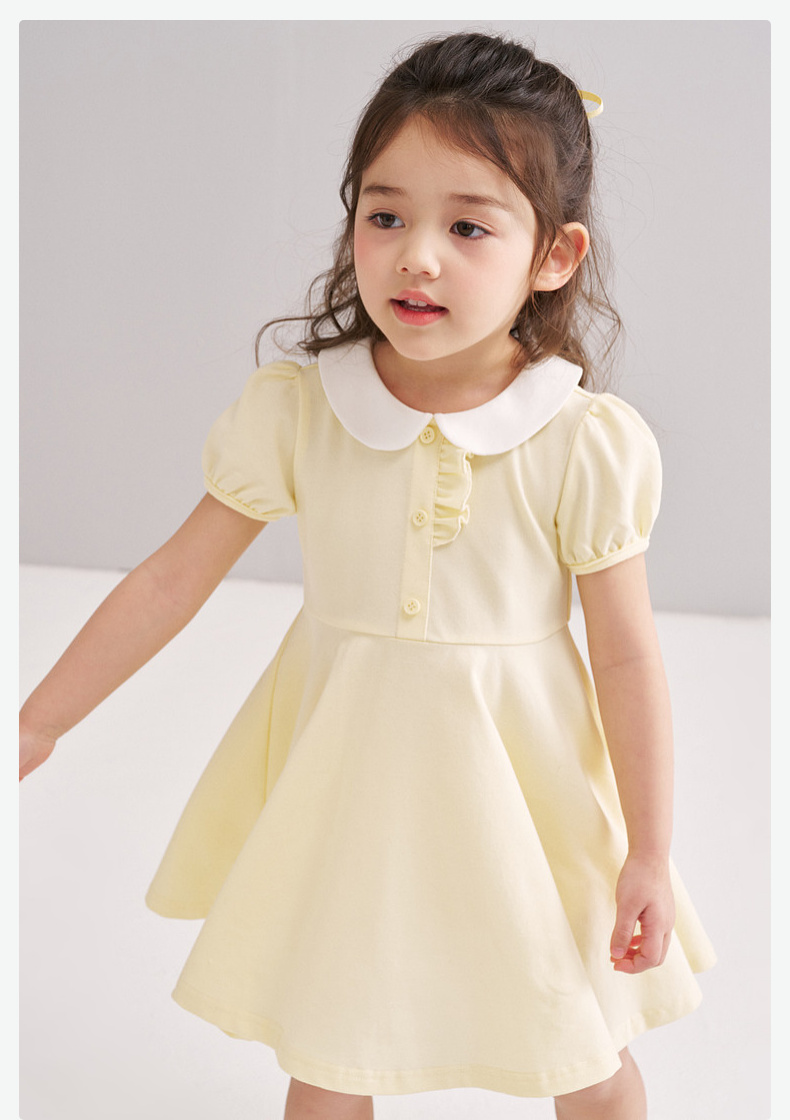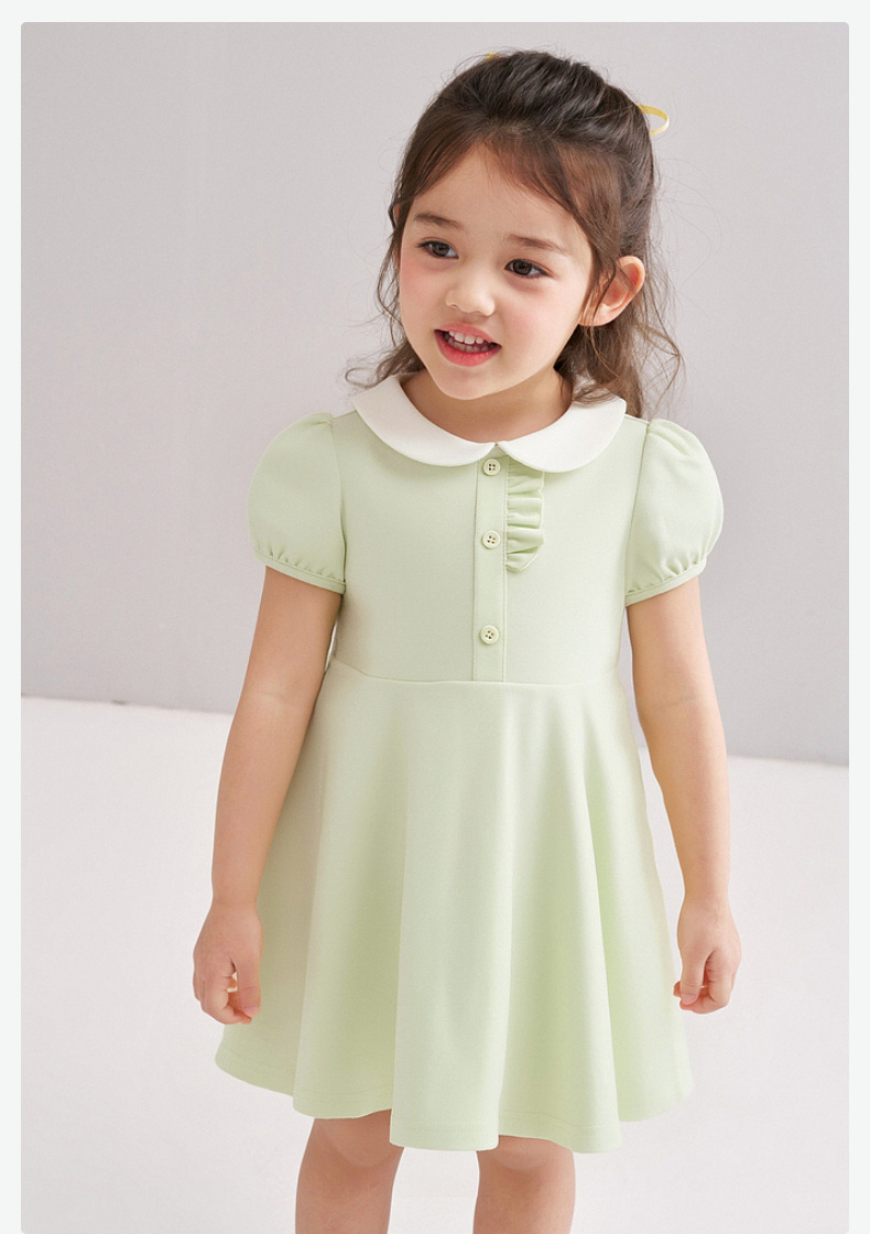 笛莎/Deesha 松饼熊2026年夏季新款童装女童甜美学院风翻领针织短袖连衣裙