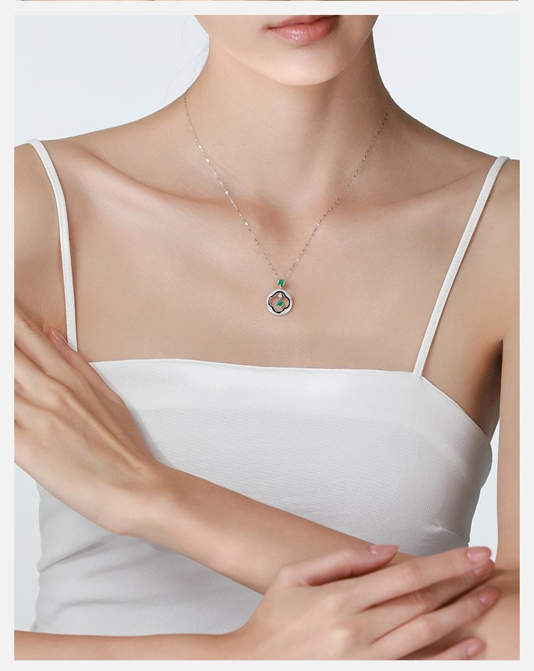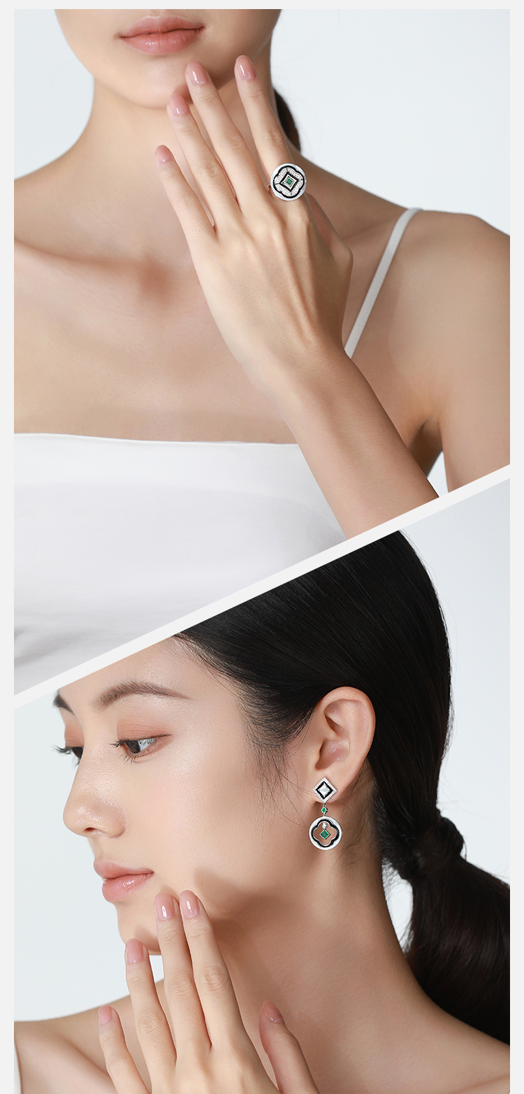【姑苏】JULEE JULEE茱俪珠宝 18K白金祖母绿钻石珐琅母贝项链戒指耳饰套装