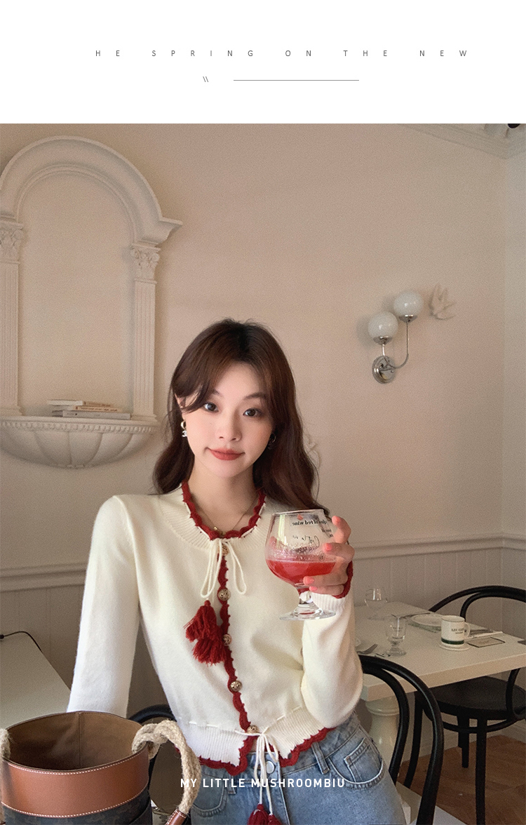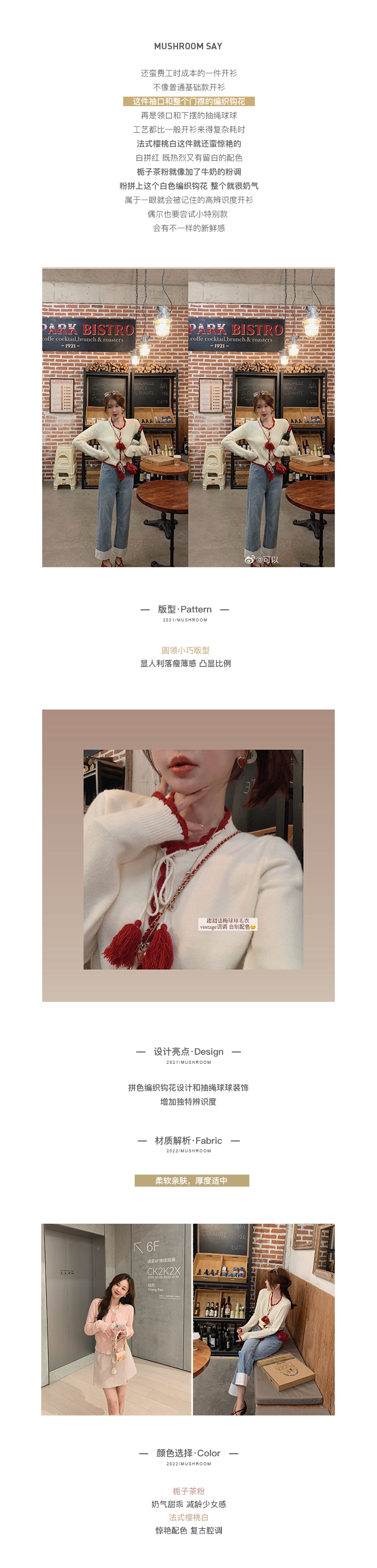 金蘑菇菇 断码特价【甜甜话梅 球球开衫】独特编织钩花设计感甜甜针织开衫