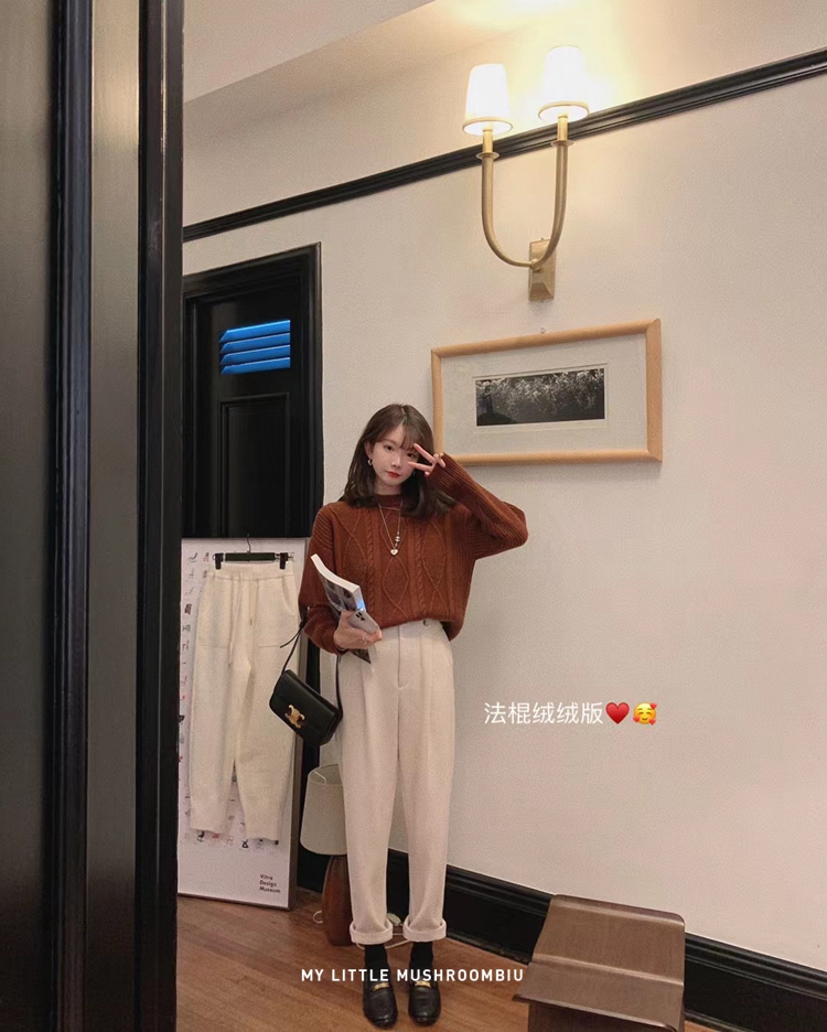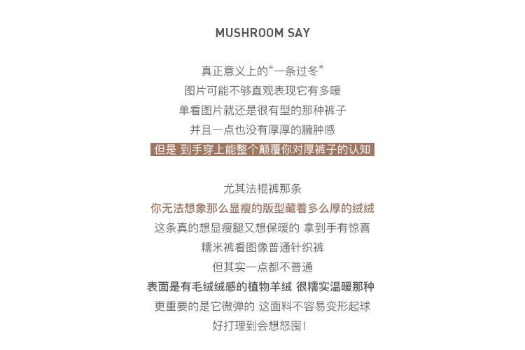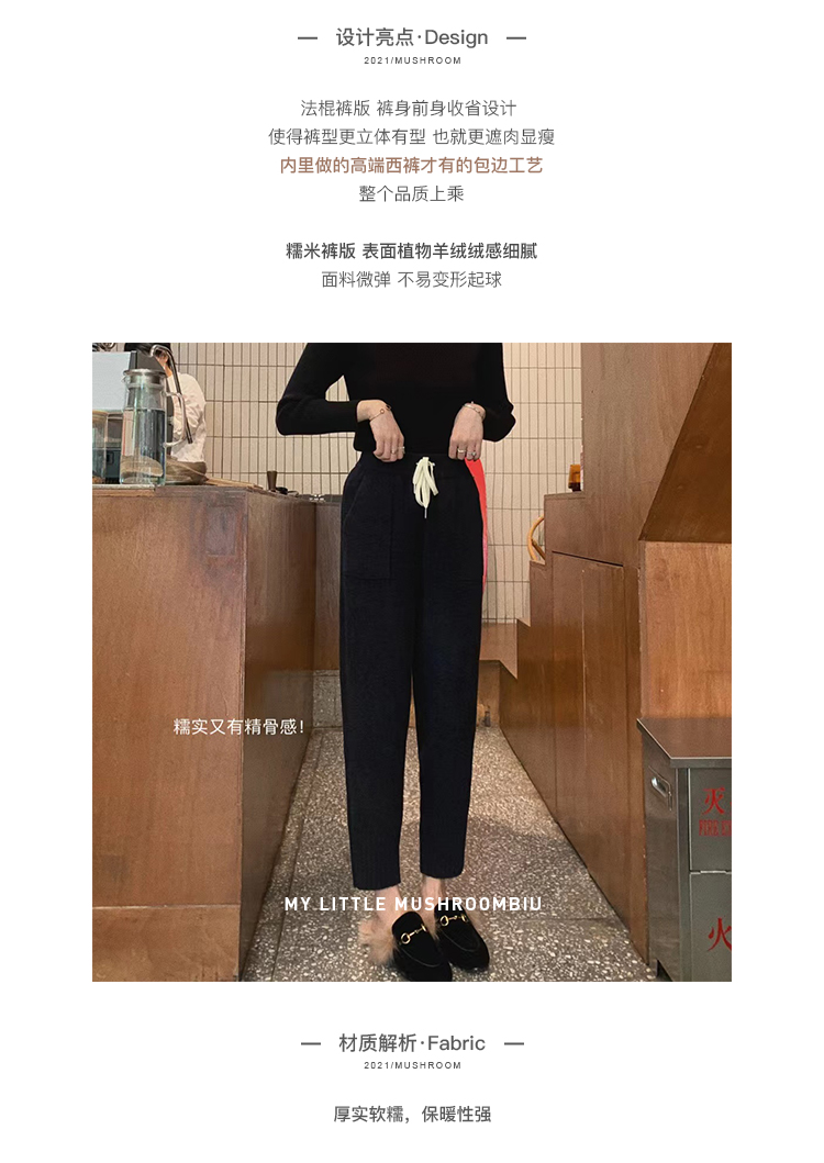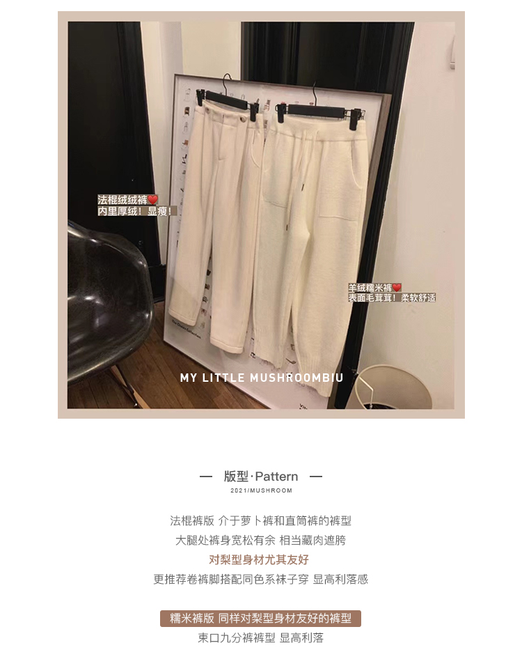 金蘑菇菇【一条过冬裤王合集!羊绒糯米裤+法棍绒绒裤】冬日休闲