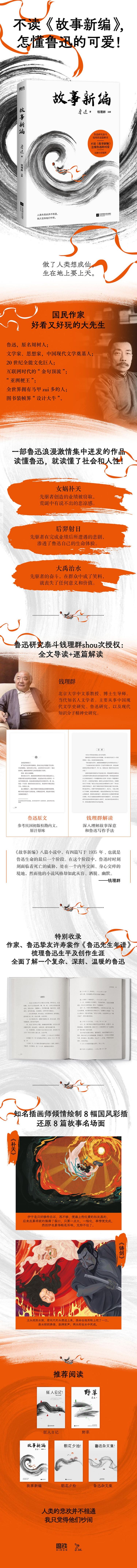 这是鲁迅被压抑的浪漫主义激情一次集中的迸发,他以远古神话、历史传说为题材,写就了8篇脑洞大开的短篇小说。 小说的主人公,有古代神话里的英雄,比如射日的后羿、造人的女娲、治水的大禹,还有古代的圣人、贤人,比如孔子、老子、墨子、庄子,他们身上都有一些神圣的光圈。鲁迅突发异想:这样一些身上有着神圣光圈的英雄、圣贤,如果有一天走到百姓当中,成了普通人,神变成人,圣人变成常人,这时他们会有怎样奇怪的遭遇和奇怪的命运呢?整本《故事新编》就是围绕这个古怪的想象展开的。 鲁迅研究泰斗钱理群逐篇解读,引领我们走进鲁迅真实的精神境界。读懂鲁迅,就读懂了我们这个社会、这些人!