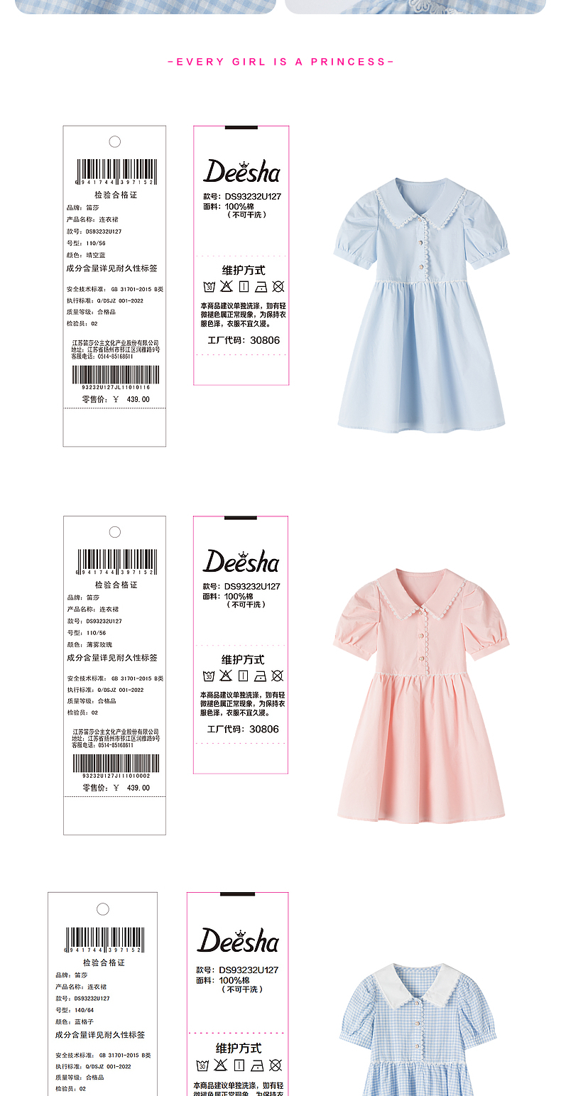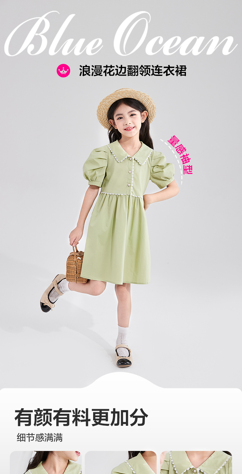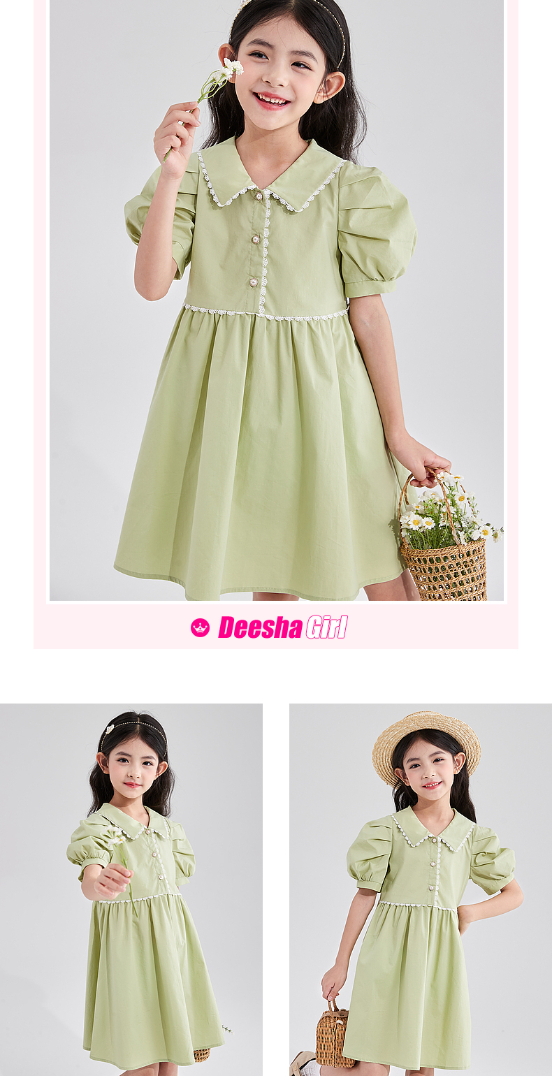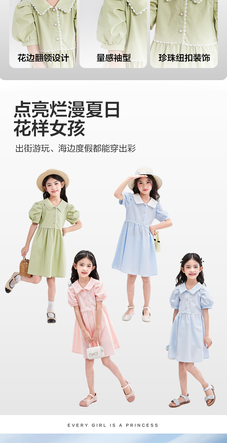 笛莎官方童装女童裙子2023新款夏装洋气大童公主裙纯棉儿童连衣裙
