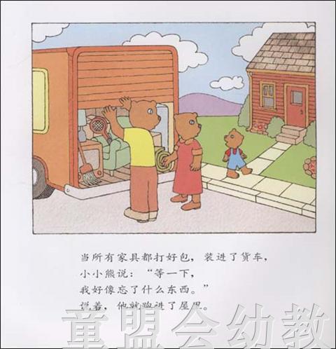这个故事里首先回头走去的是小熊,是孩子,可正式想起进行这个仪式的是一个父亲。这是一个值得赞许的父亲,他会有忽略和遗忘,但是他在孩子的心情前能被触动,立即响应,于是故事的主人就由一个变成了两个,变成了三个。当一个美丽的故事是由父亲、母亲和孩子一起完成的,那么就会有“遗传”的力量,就很难离得开,小熊长大了,一个人住到独自的房子里了,他对你的惦念好深哦好长,他*也不可能愿意对你说再见。他的房子里,一直有你在。