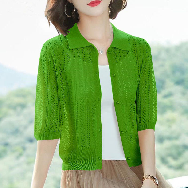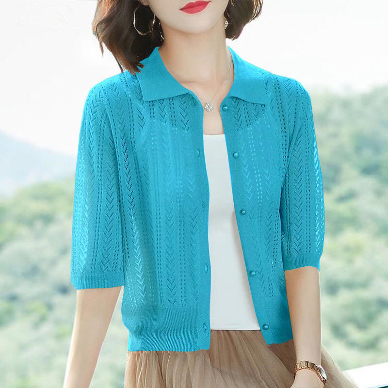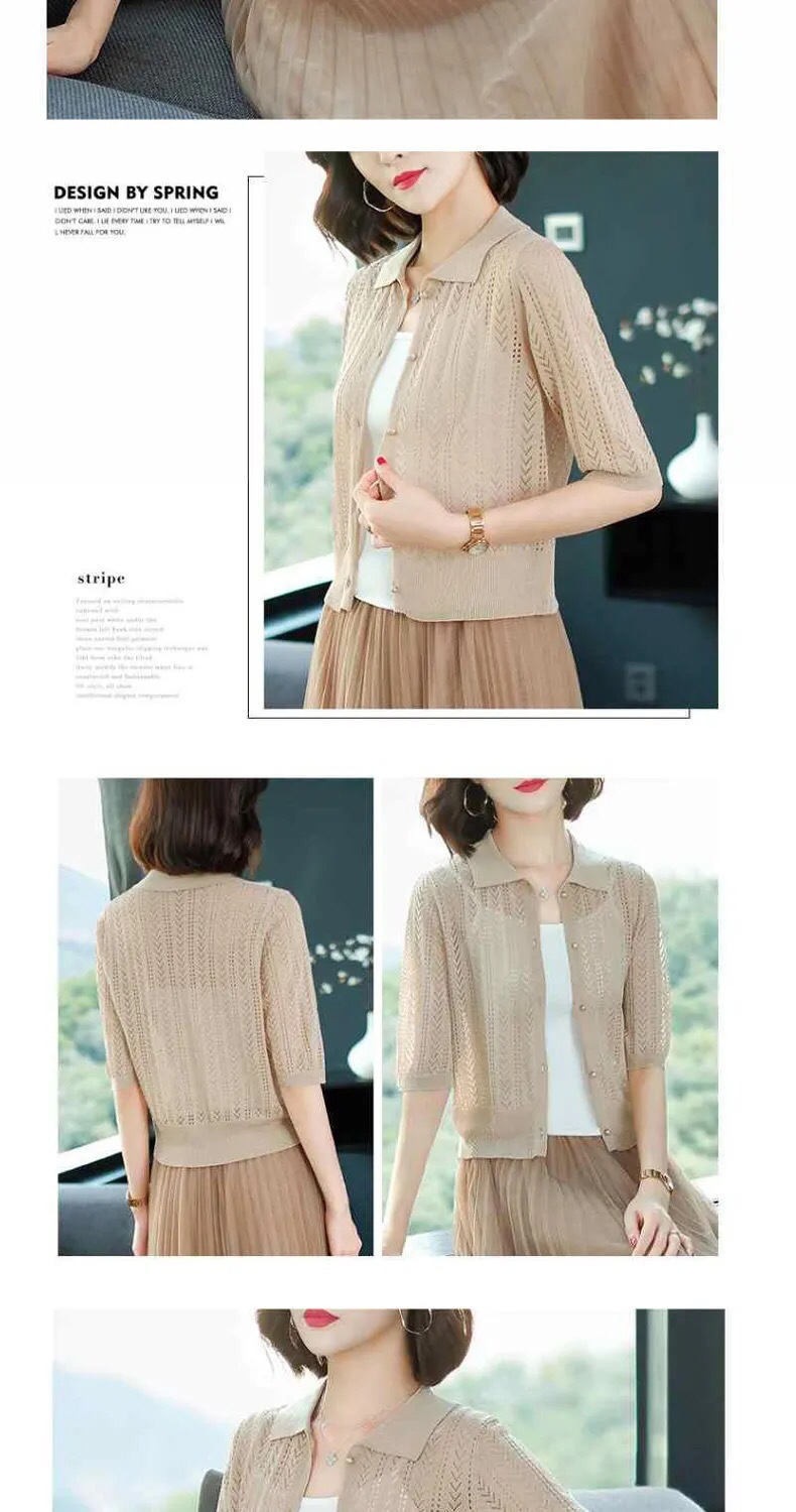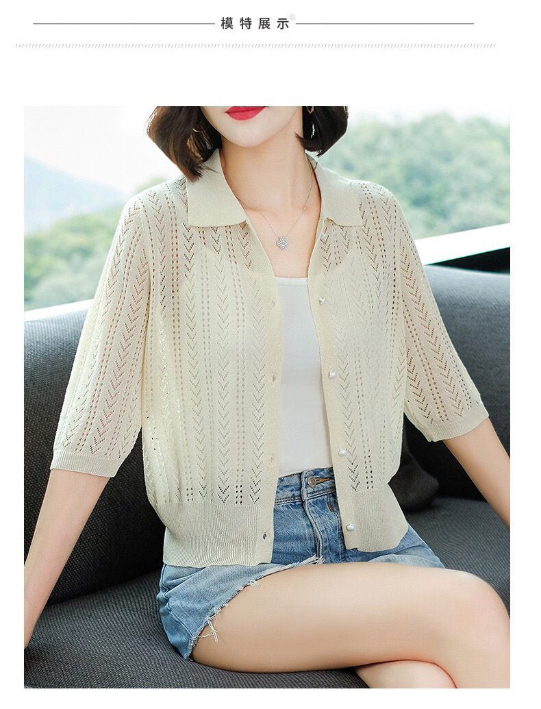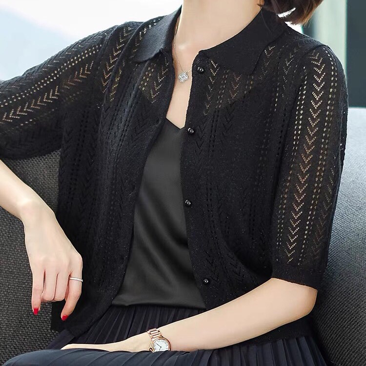 冰丝针织开衫女薄款短款镂空外搭小开衫外套七袖空调衫春夏季圆领DD