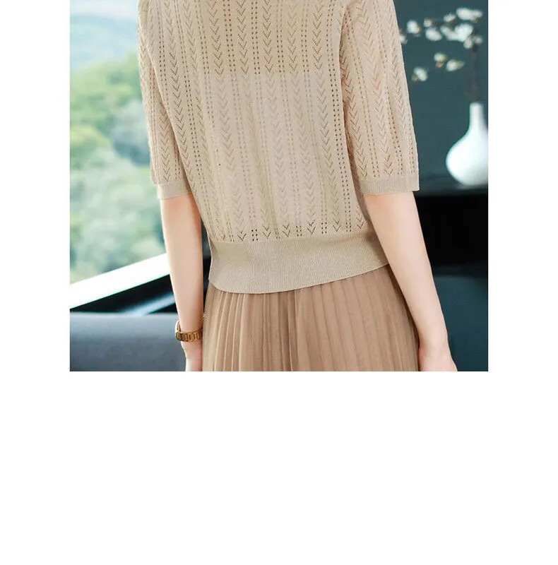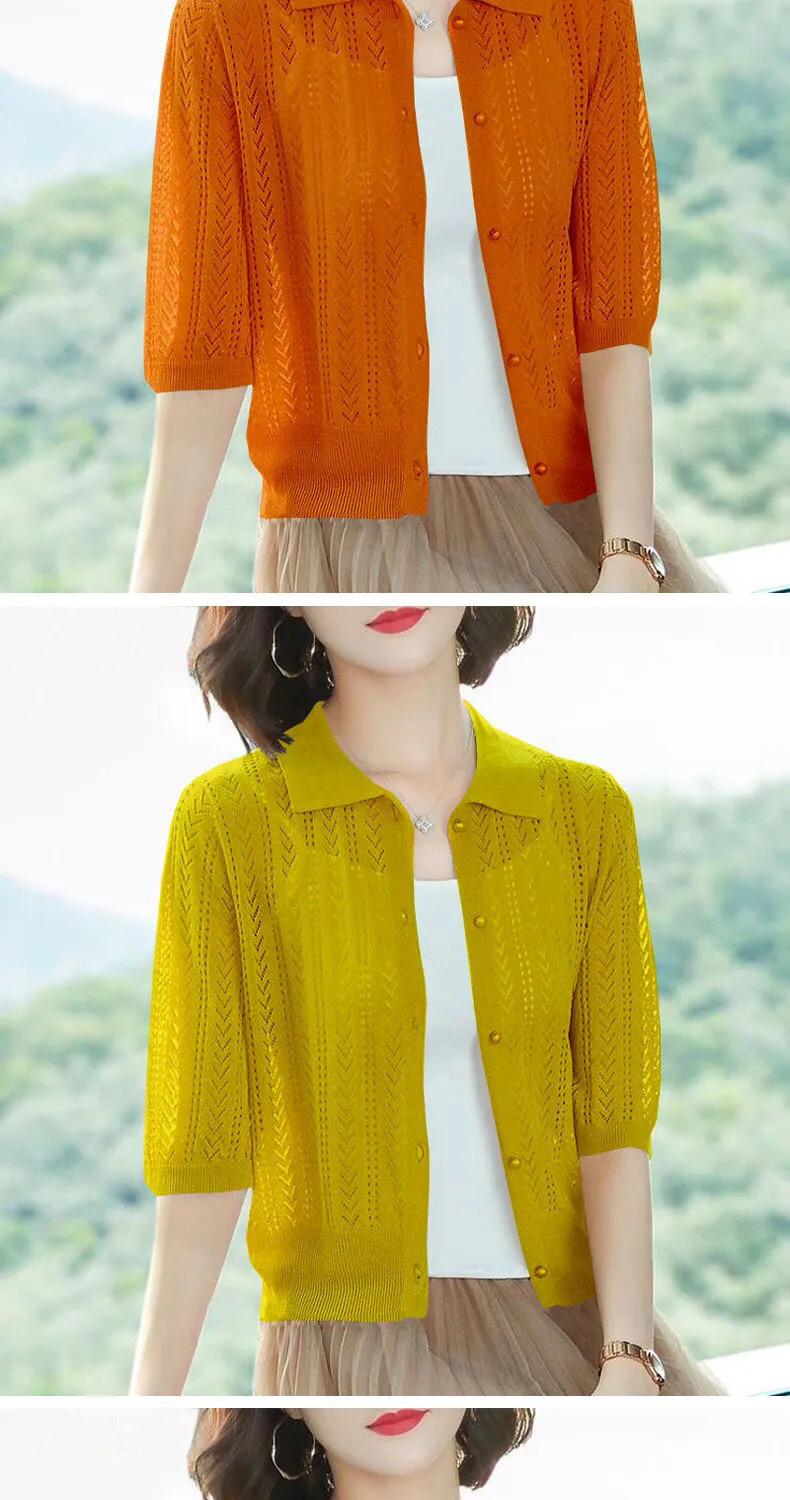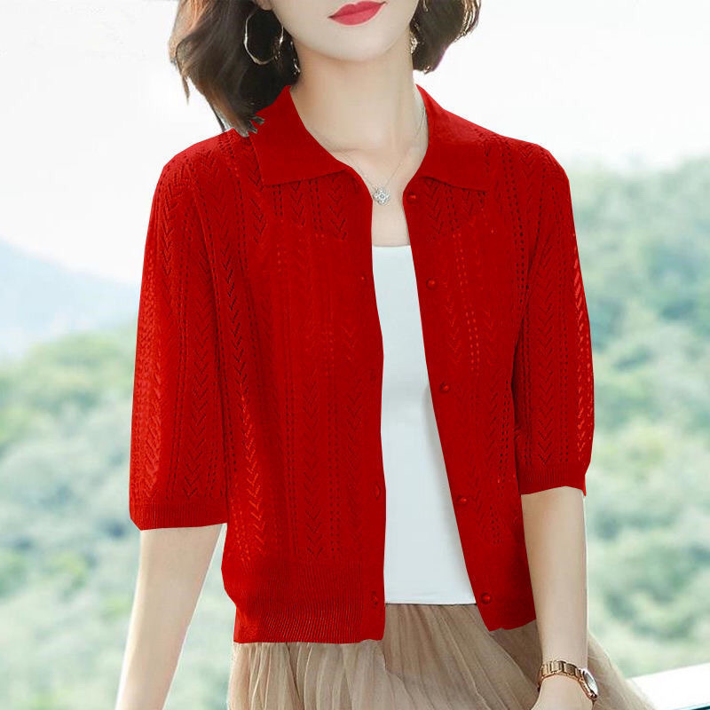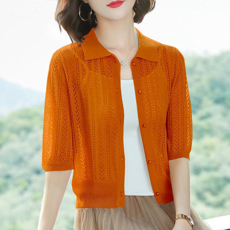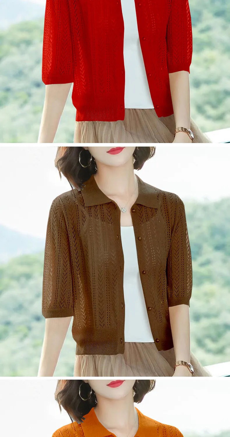 冰丝针织开衫女薄款短款镂空外搭小开衫外套七袖空调衫春夏季圆领DD