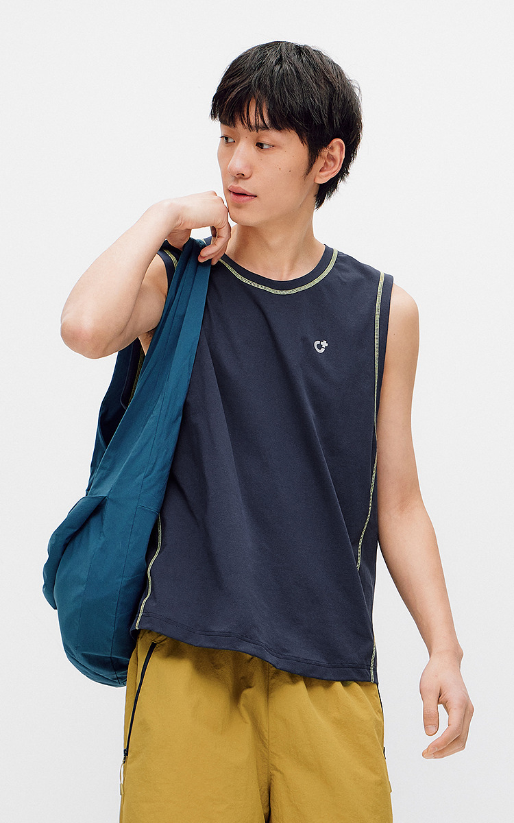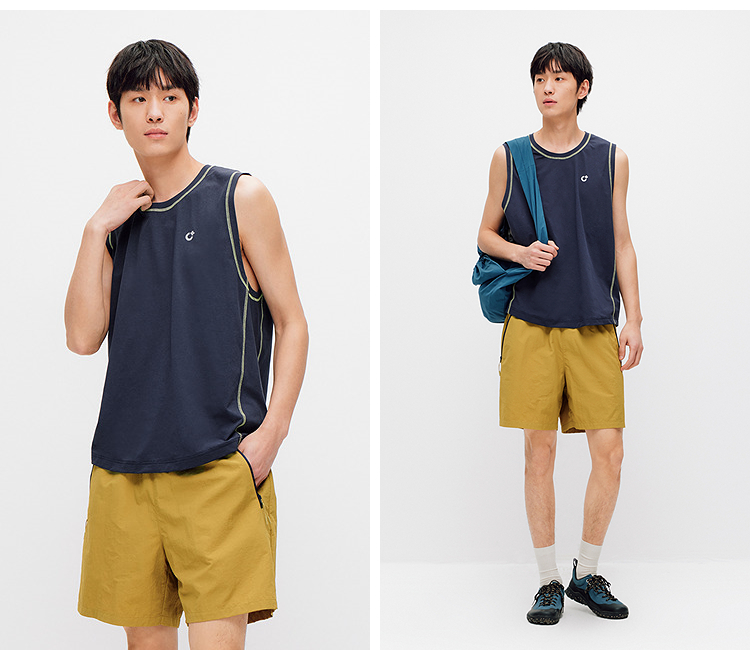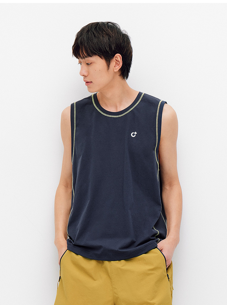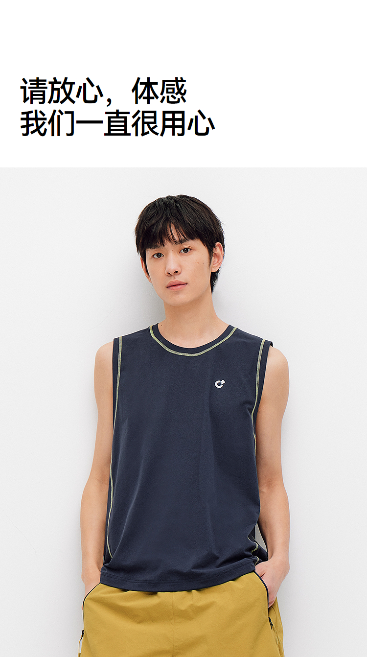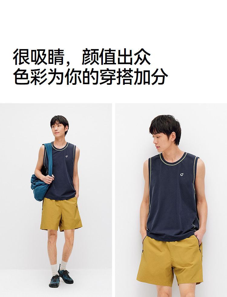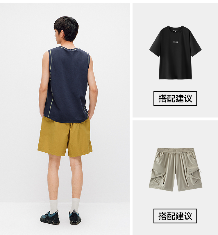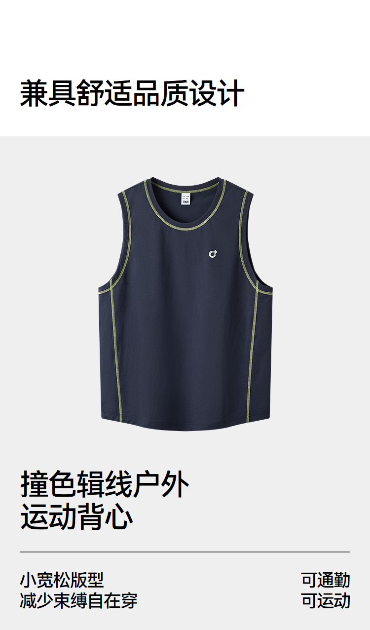 森马背心男夏季户外运动撞色辑线坎肩2026新款小宽松反光印花上衣