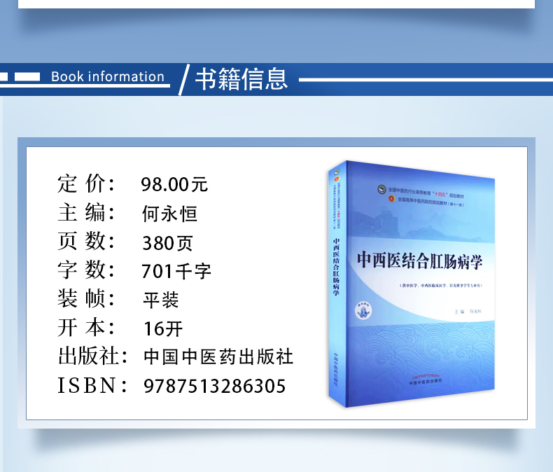中西医结合肛肠病学 全国中医药行业高等教育十四五规划教材 何永恒 供中医学中西医临床医学针灸推拿学等专业 中国中医药出版社