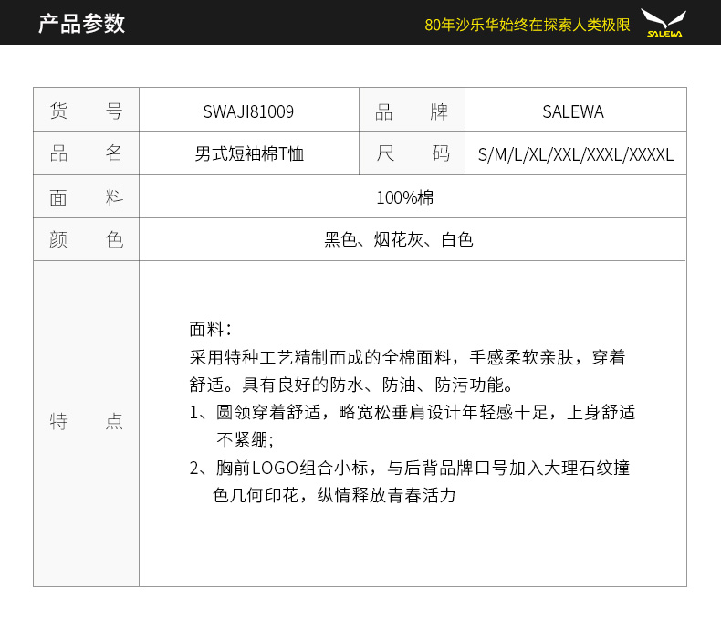 SALEWA|男式短袖棉T恤 SWAJI81009