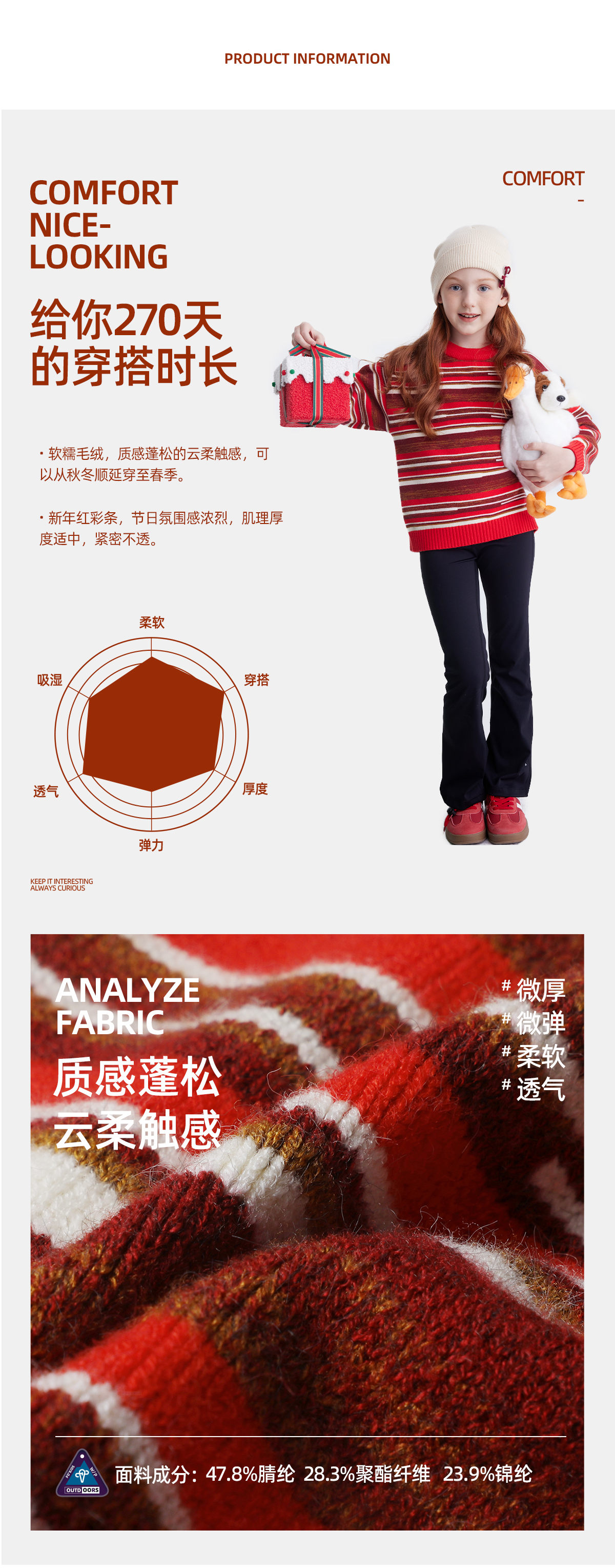【锦服系列 冬日彩虹条】儿童复古彩条条纹圣诞新年毛衣 PDMY2437