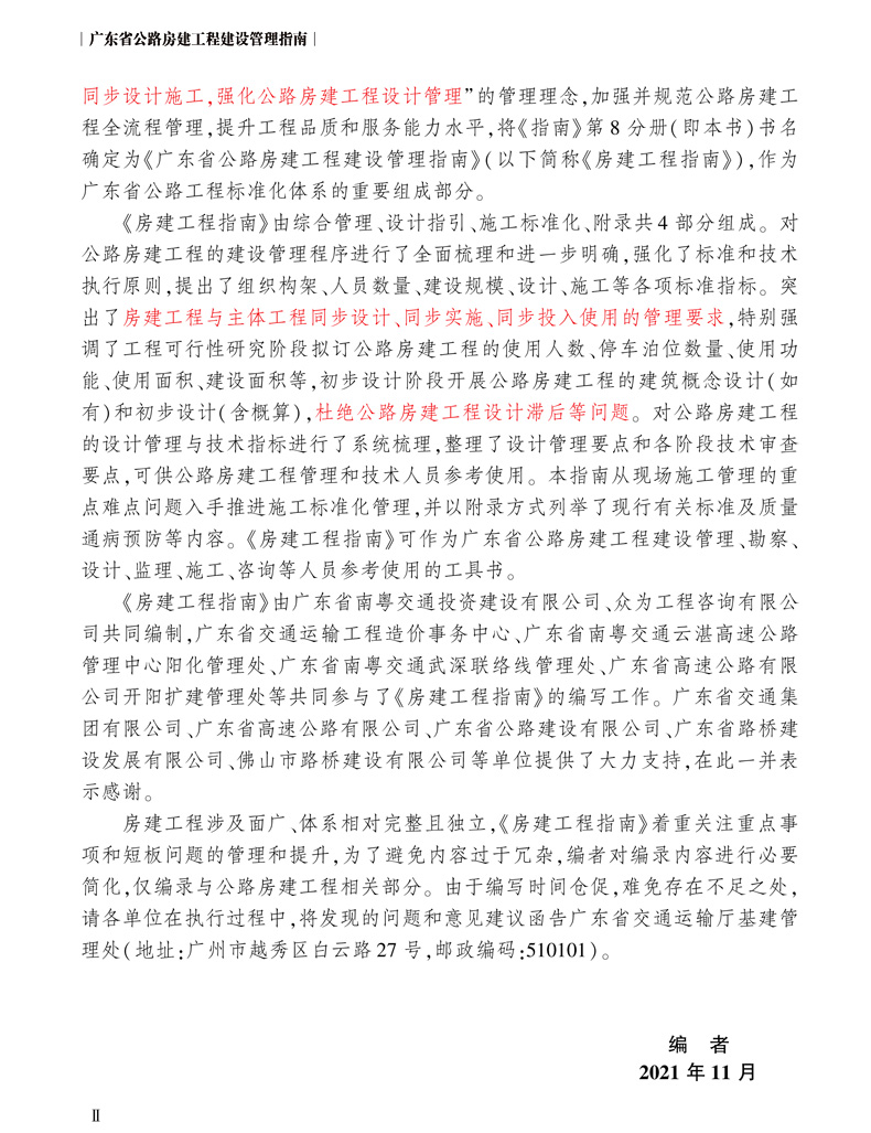 广东省公路房建工程建设管理指南 2022新书 广东省交通运输厅组织编写