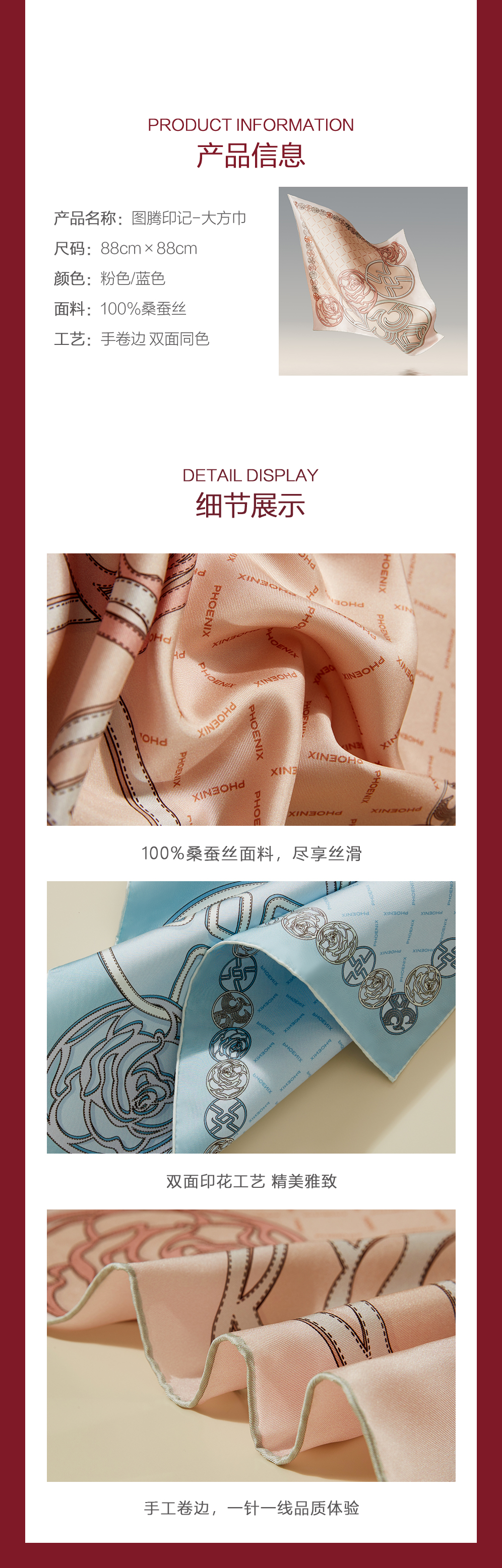 凤凰之家“图腾印记”88厘米双面印花大方巾