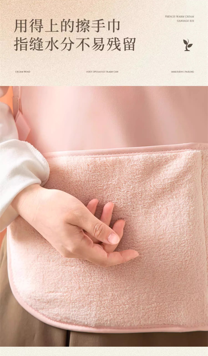 甄选珊瑚绒面料,擦手方便 要不说总有人在贴心做设计 这个能随时擦手的围裙可不是一点方便 都知道平时在厨房,手手湿湿的很不方便,更重要的是 ❌如果手上有水对于炒菜前的油锅来说 可是很危险的哦~ 所以这款前边可随时擦手的围裙 分分钟一个甩手就能解决大问题 方便又卫生~