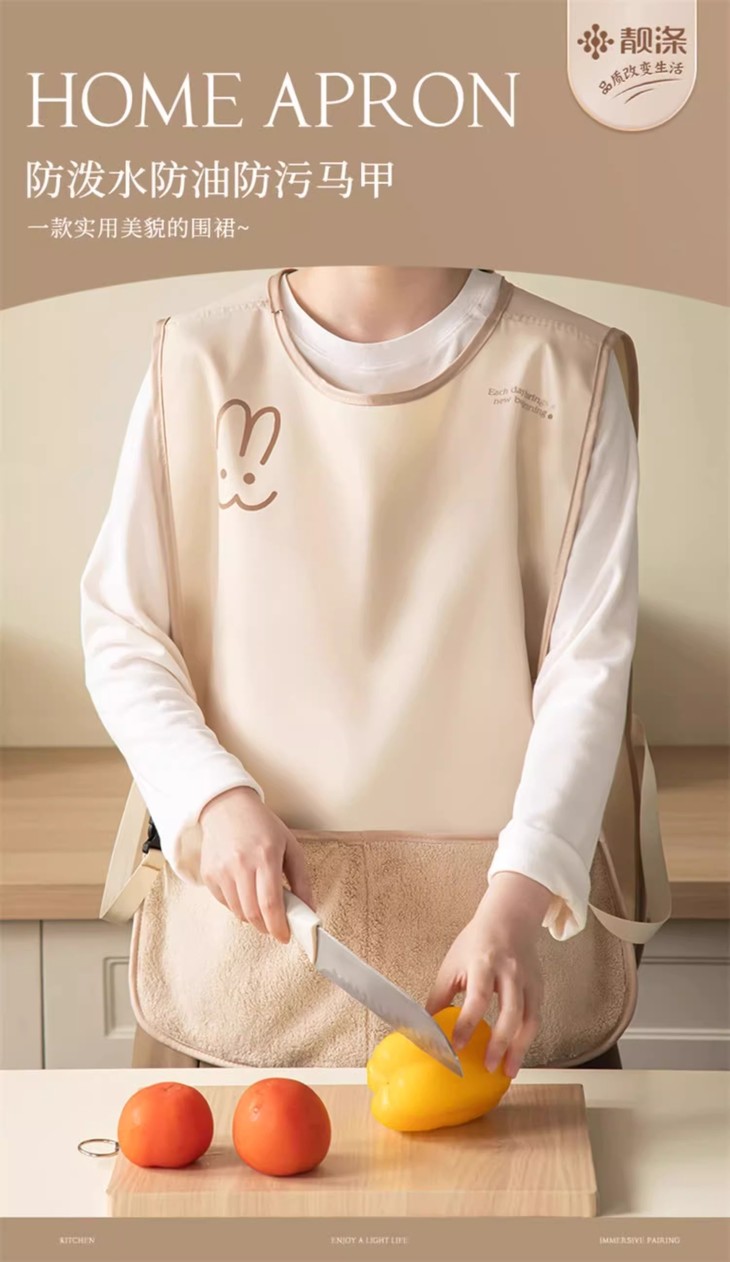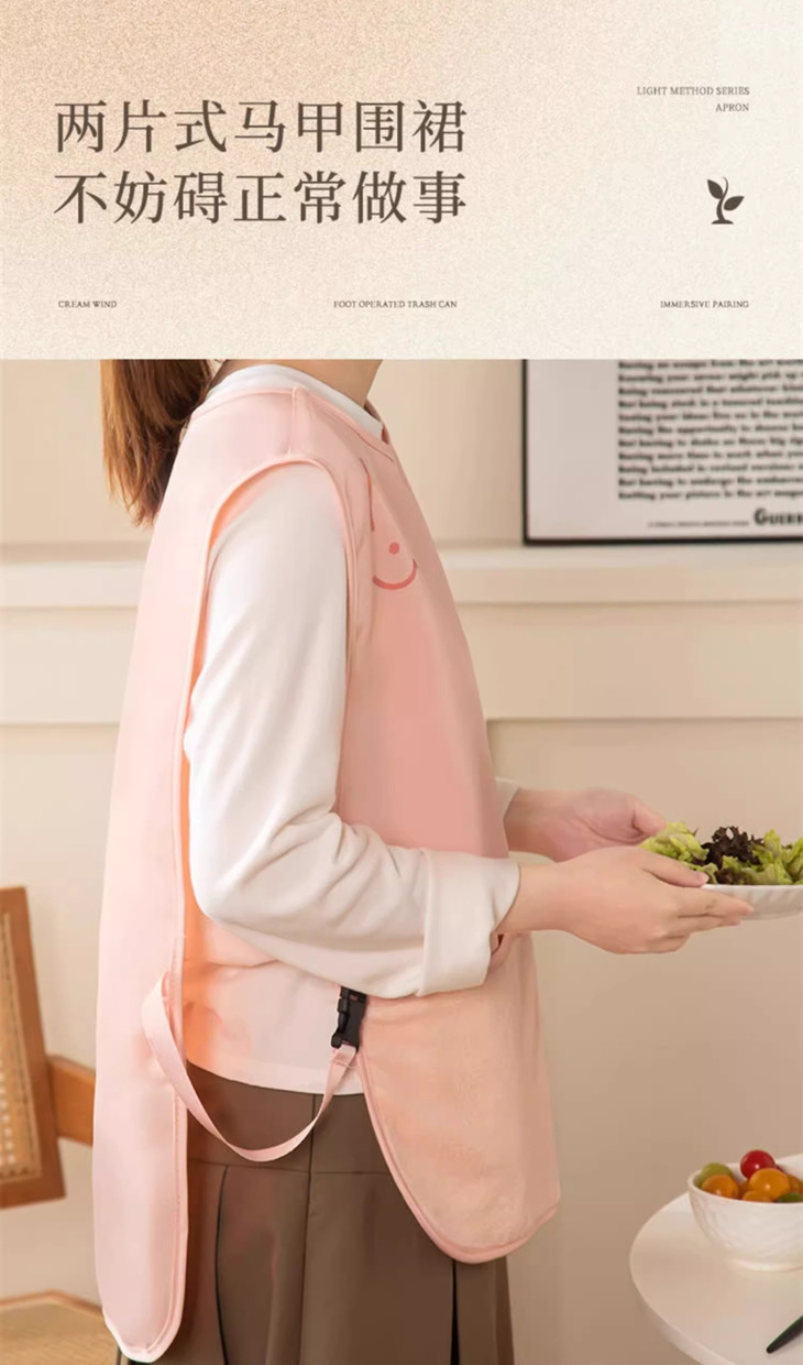 🔥无袖马甲设计,灵活自在 采用无袖背心式设计 穿着者手臂活动不受限 在厨房翻炒菜肴时 能自由施展厨艺