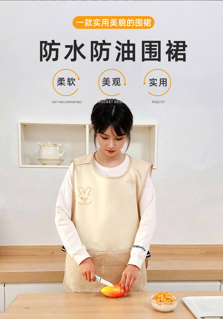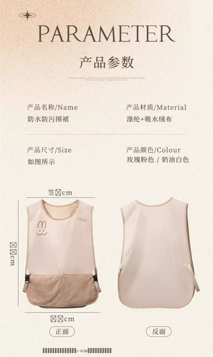 一身精致、可爱的围裙,不仅防油 还能让心情变好 围裙采用优质涤纶+防水涂层制成 胸前的小兔图案体现出家的温馨感 让厨房家居生活变得更有乐趣✨