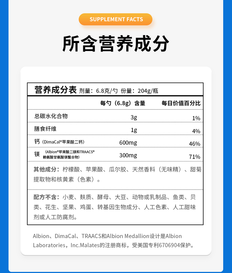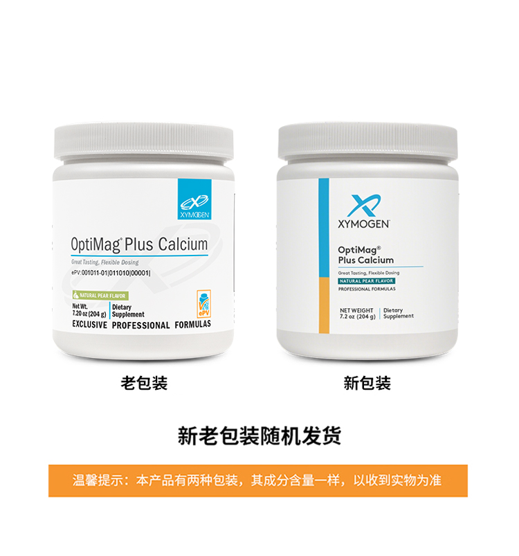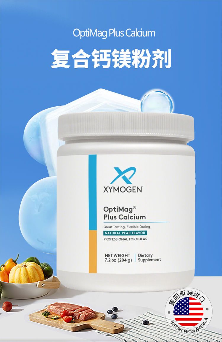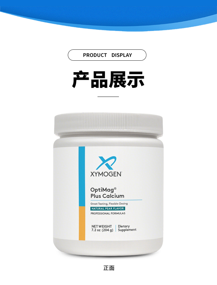 【效期至27年5月】复合钙镁粉剂 XYMOGEN OptiMag Plus Calcium Pear 30 sv 204g/瓶